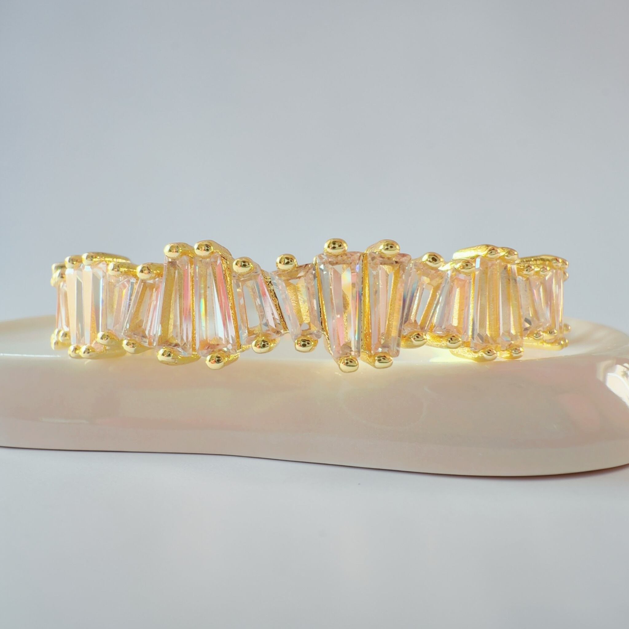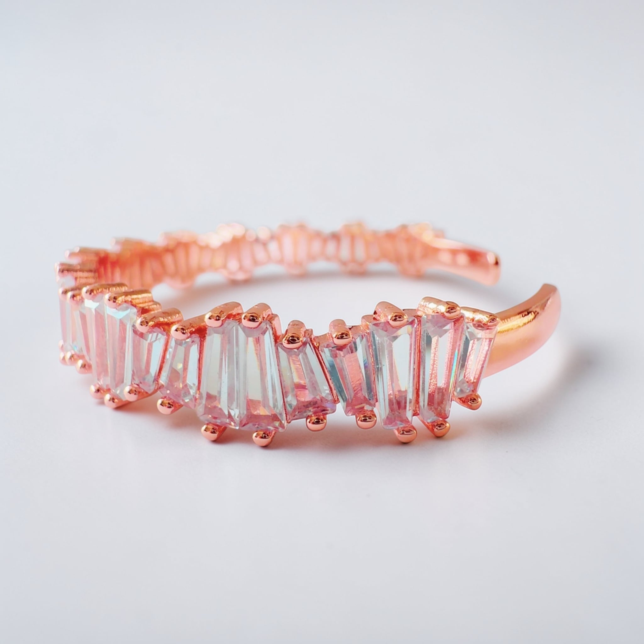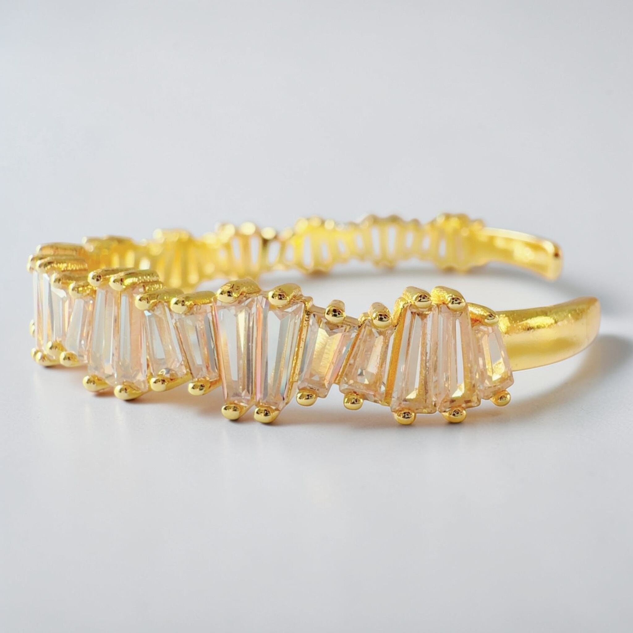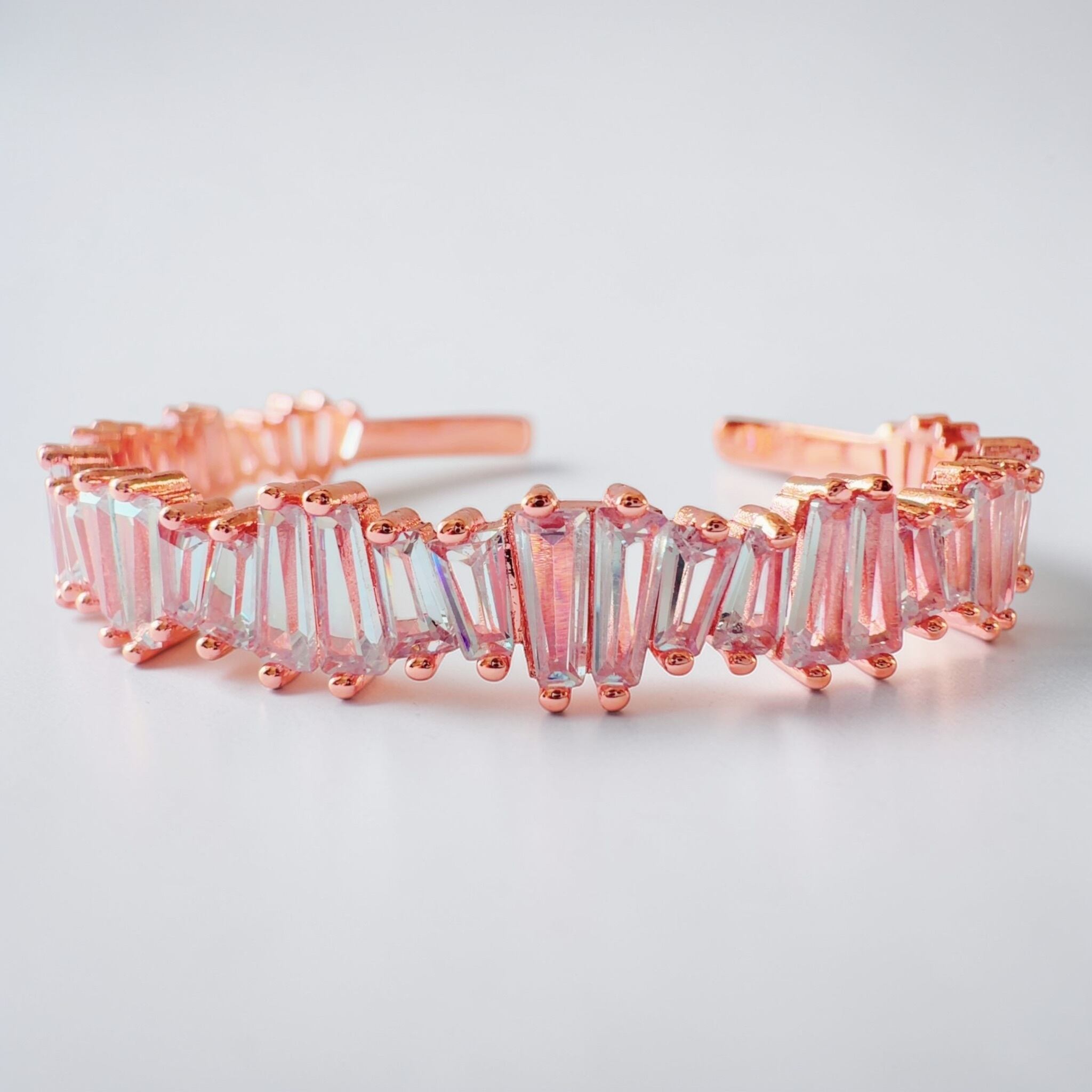従来のバングルが持つ華やかさを受け継ぎながら、silverを用い、今回は縦ラインを意識したストーンへと変えることで、光の反射をより強く、美しく感じていただける仕上がりとなりました。