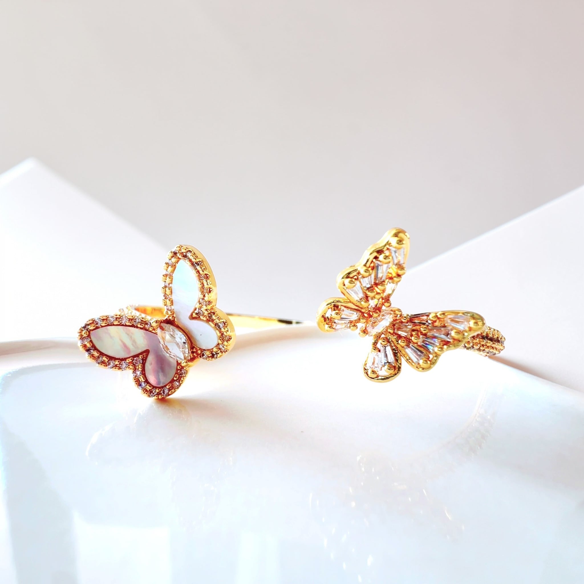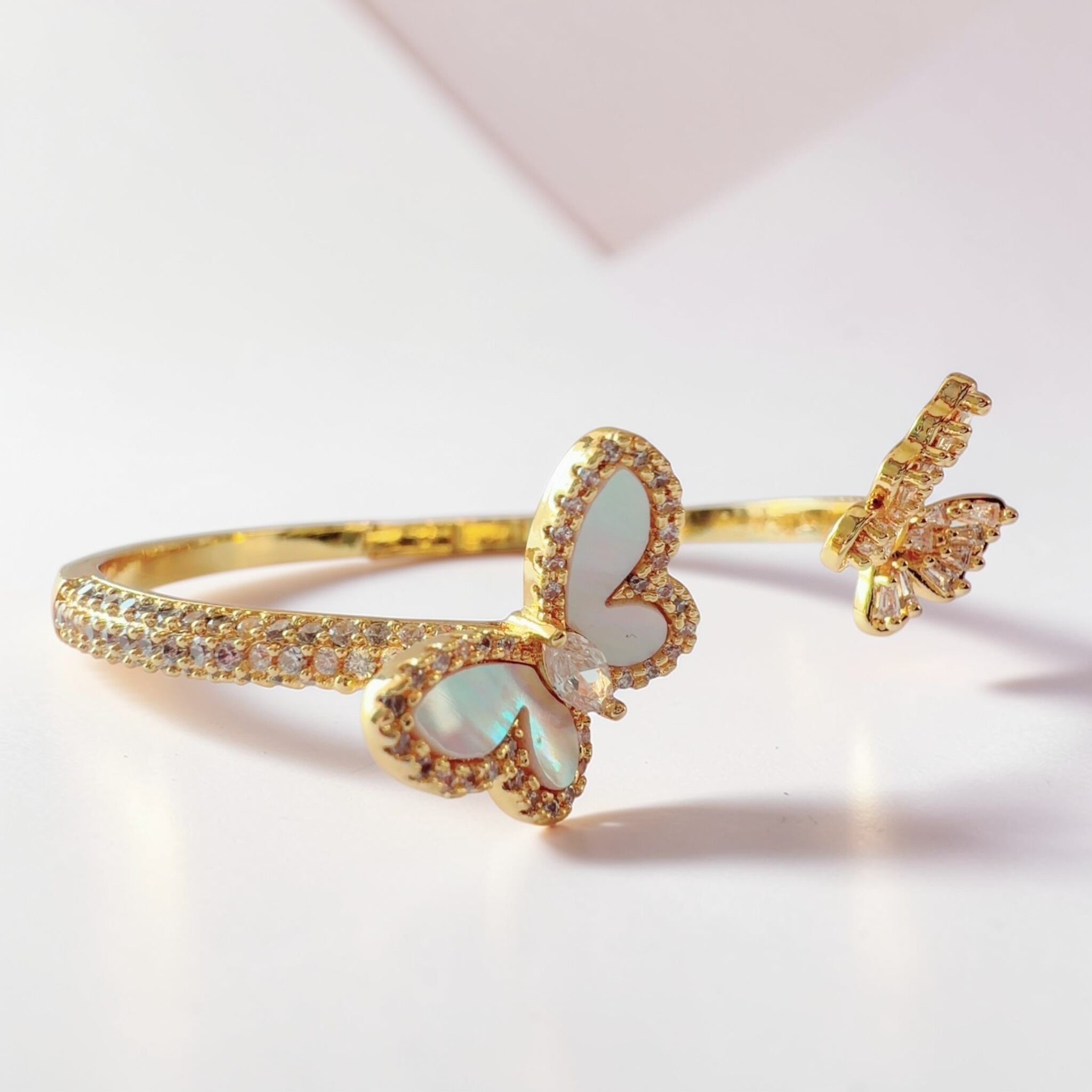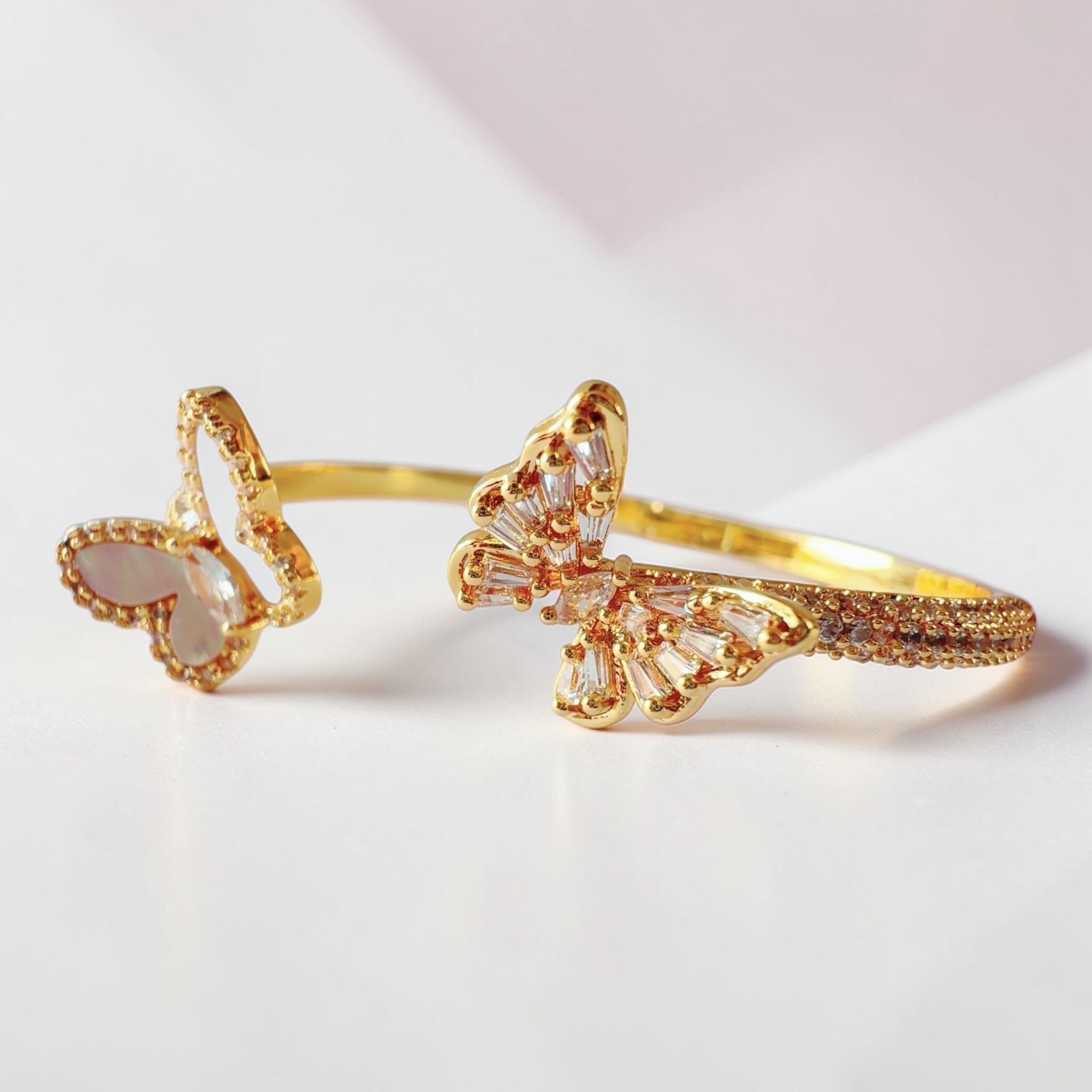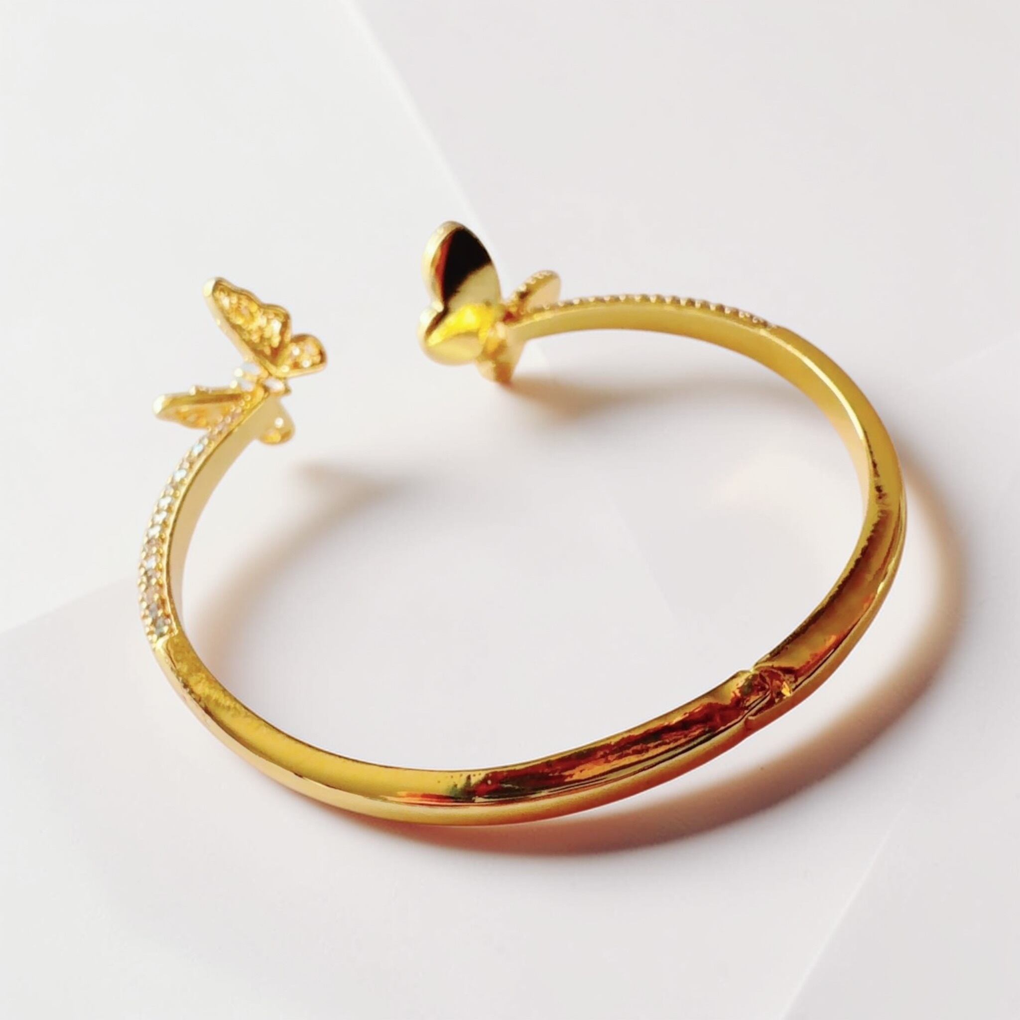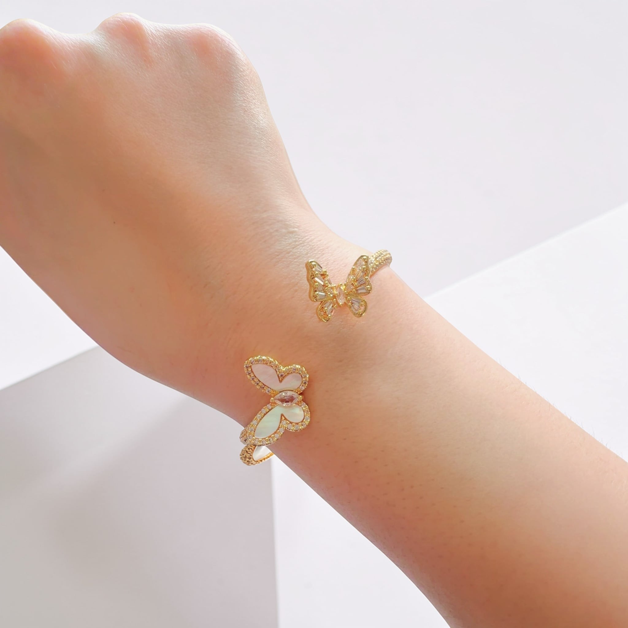 可憐に羽ばたく蝶の姿をかたどった、繊細で美しいバングルブレスレット。