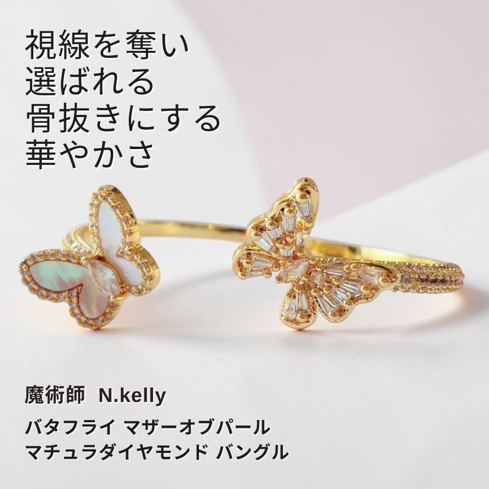 K537 骨抜きにする華やかさで視線を奪う 選ばれる女へ導く バタフライ マザーオブパール マチュラダイヤモンド バングル ブレスレット N.Kelly 製作 勝ち取る恋 魔術 アクセサリー 魔法 成就 奪う 成功 略奪愛 モテ セクシー 人気