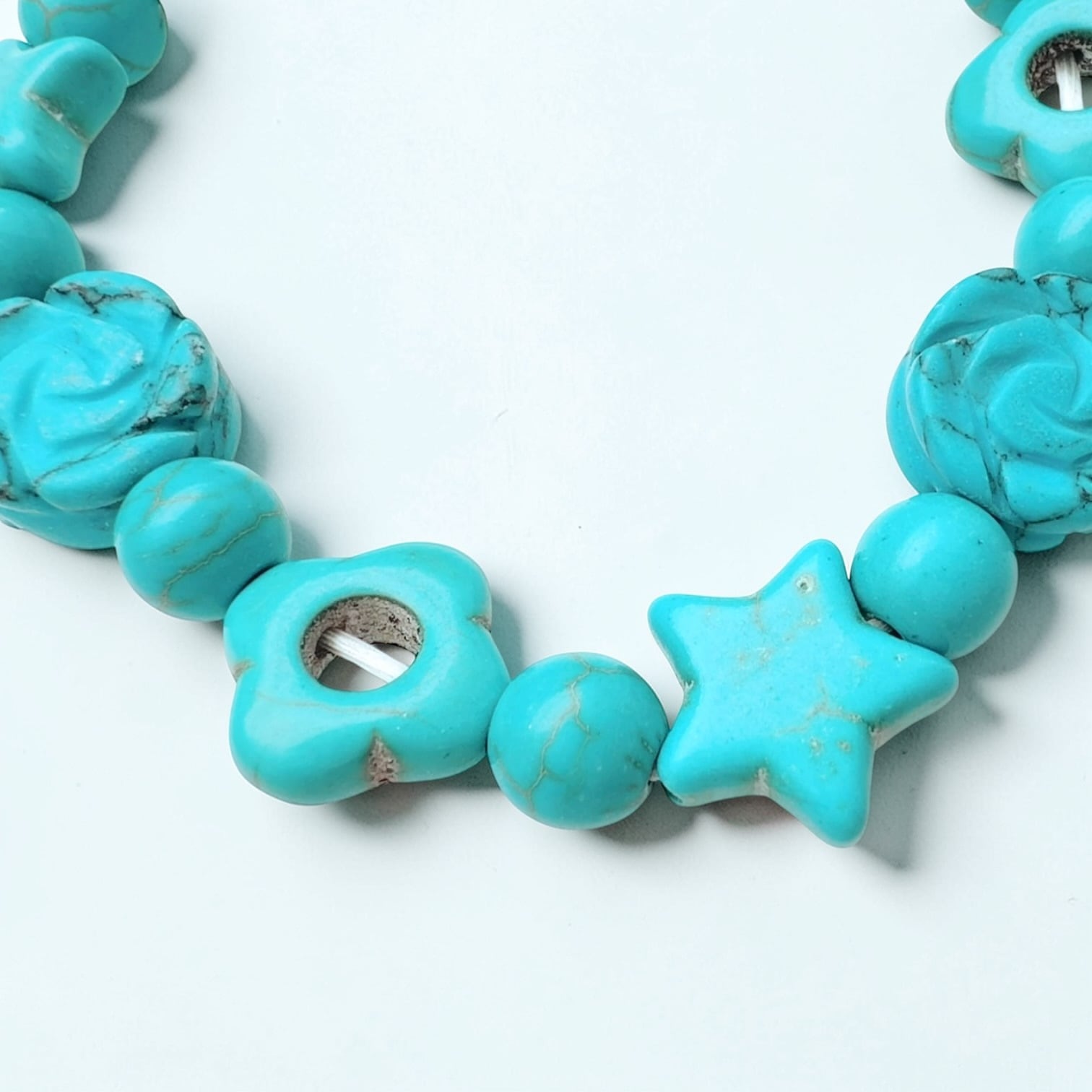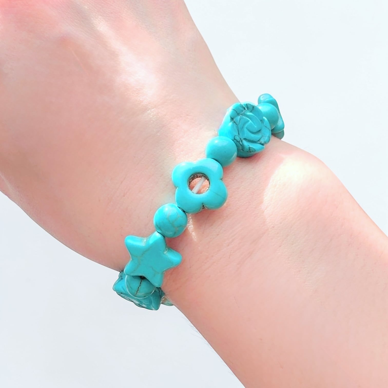 魅せて落とす 略奪魔術 ターコイズ ローズ スター フラワー 高位魔術 パワーストーン フラワー ブレスレット N.kelly製作