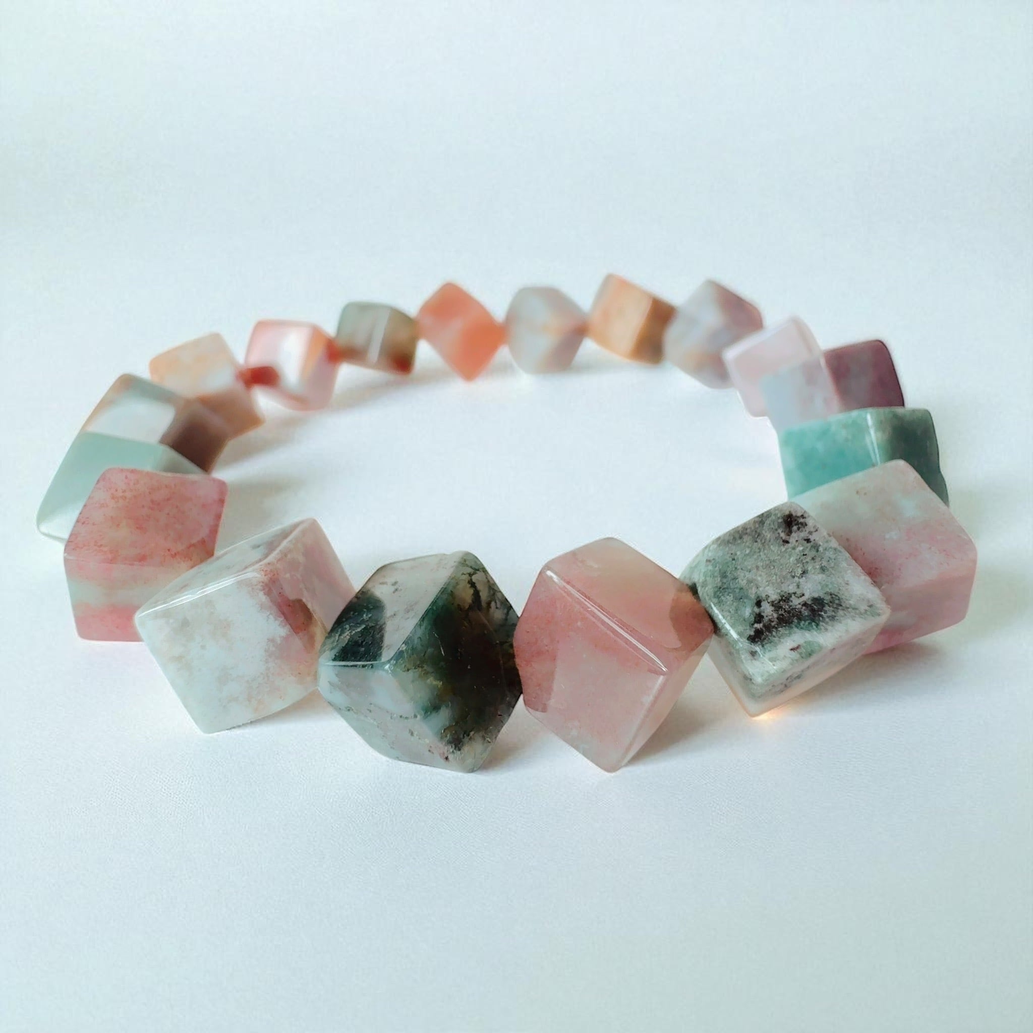 心を安定させ 運気を開花する 風水で運命を変える 光を見出す インディアンアゲート 波動ブレスレット キューブ ストーン ブレスレット