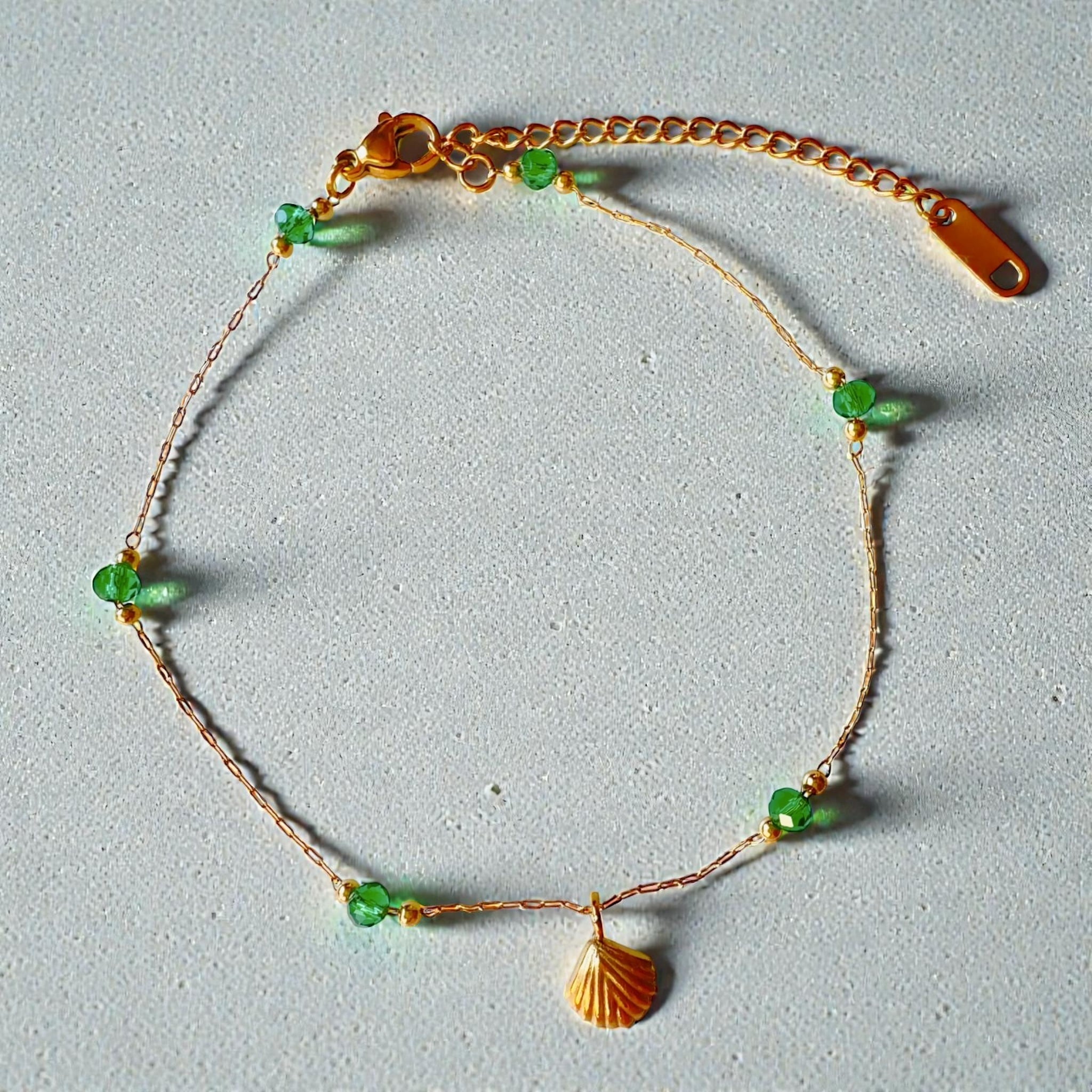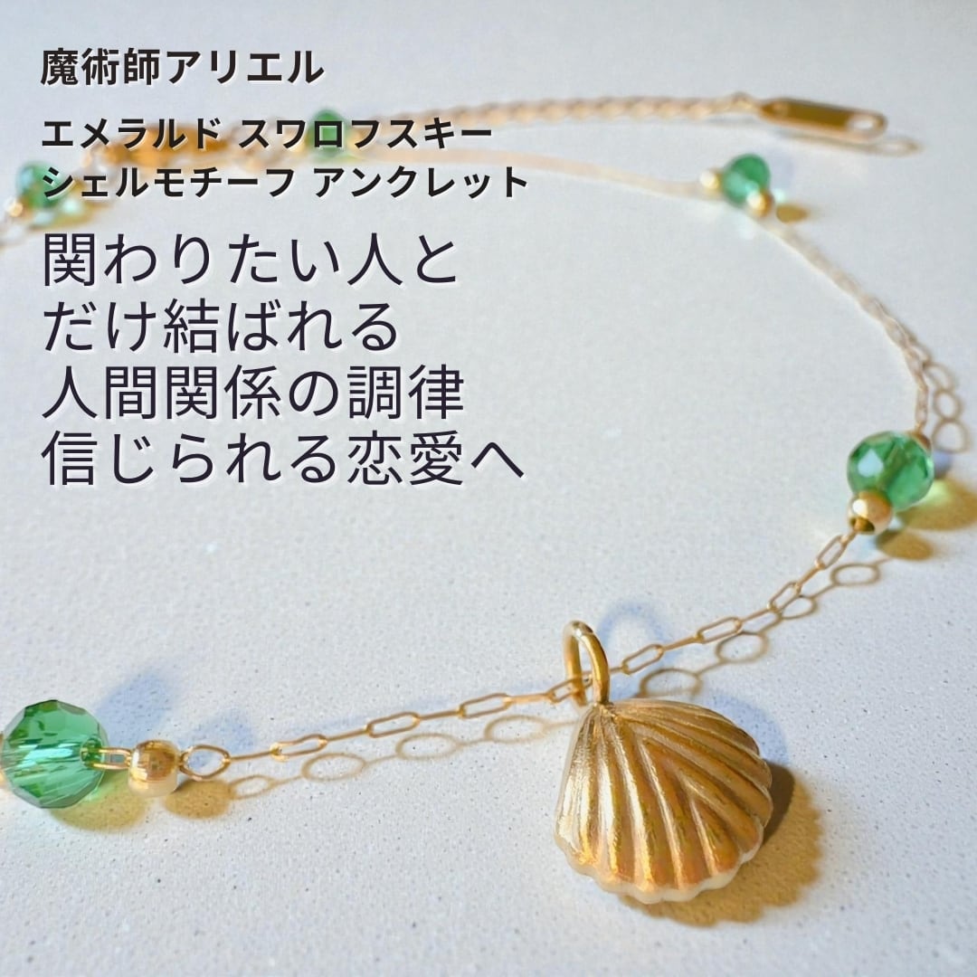 A15 傷つかない人間関係と、騙されない恋愛へ 人の輪を整える ふたご座 満月魔術 エメラルド スワロフスキー シェルモチーフ アンクレット 魔術師 アリエル お守り おまじない 成就 独占 人間関係 恋愛運 引き寄せ 魔術アクセサリー 魔術 本物 ーストーン 縁結び 引き寄せ