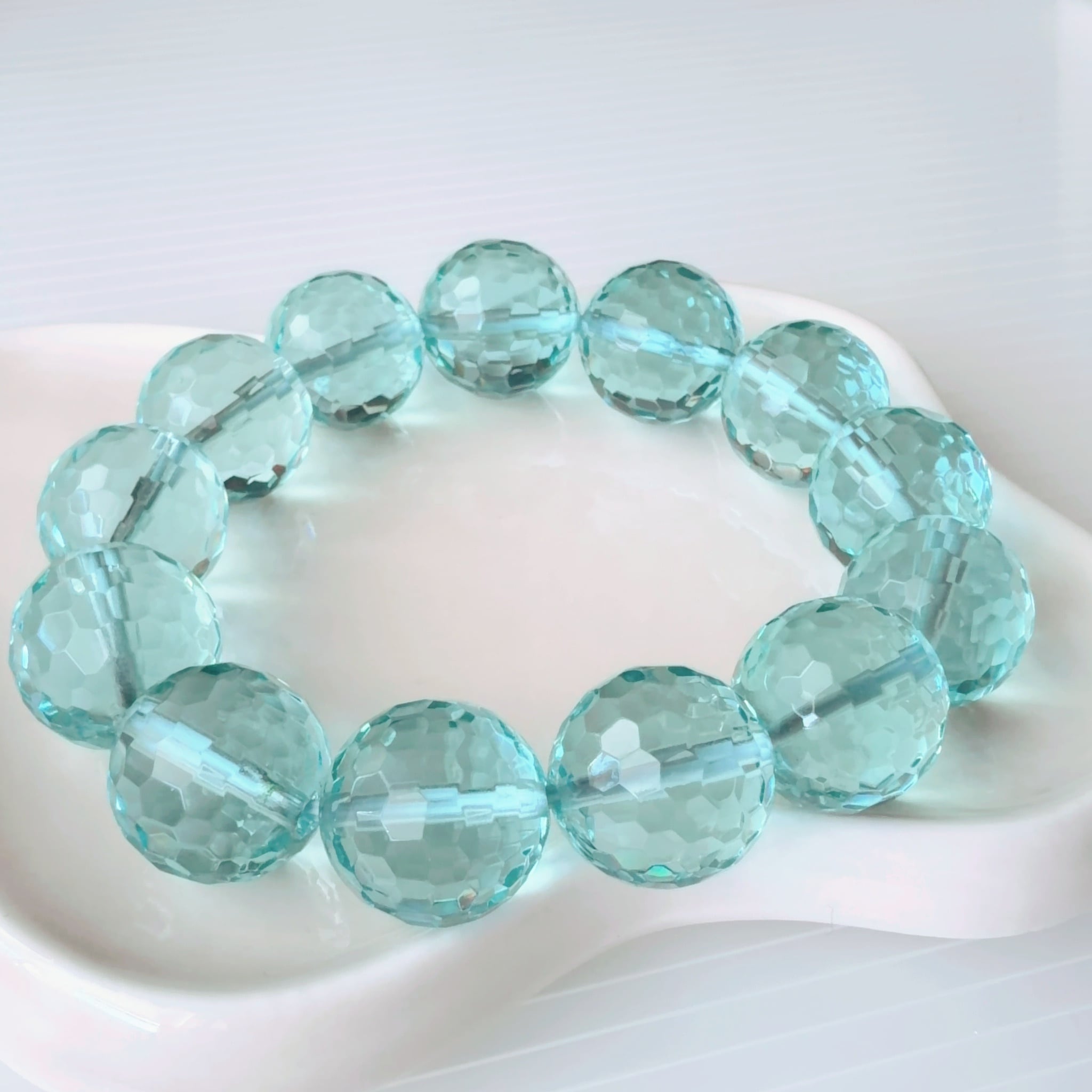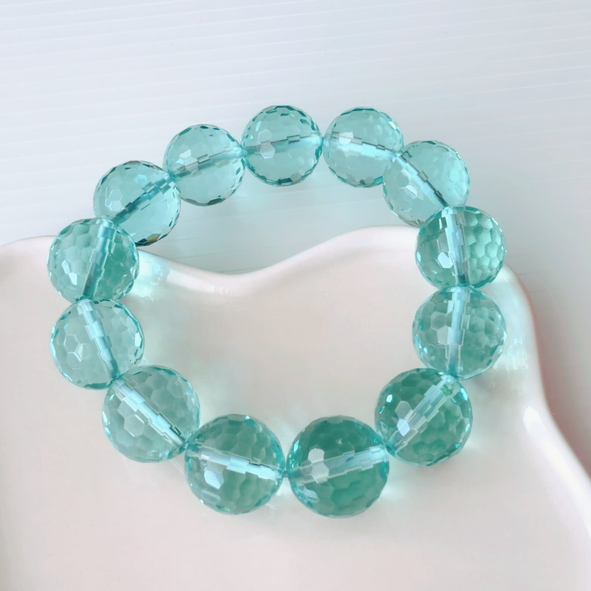 透き通るブルーカラーが美しい水晶ブレスレットは、無気力からくるネガティブな状態を断ち切り、面倒だと感じて前に進めなかったことへ、自然と意識が向くように導きます。