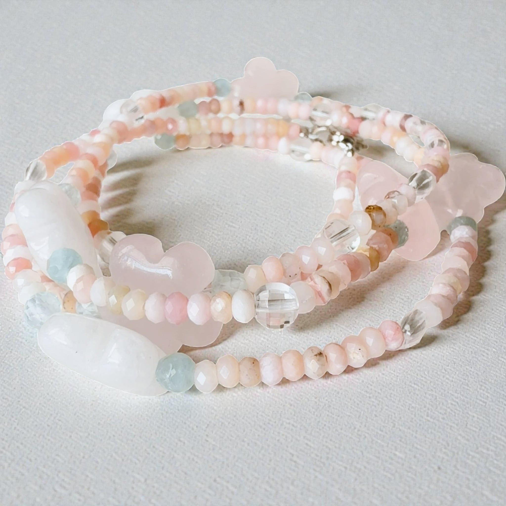 ブレスレットで整え、ロングネックレスで受け取り形にする。ふたつで運命の循環が完成します。