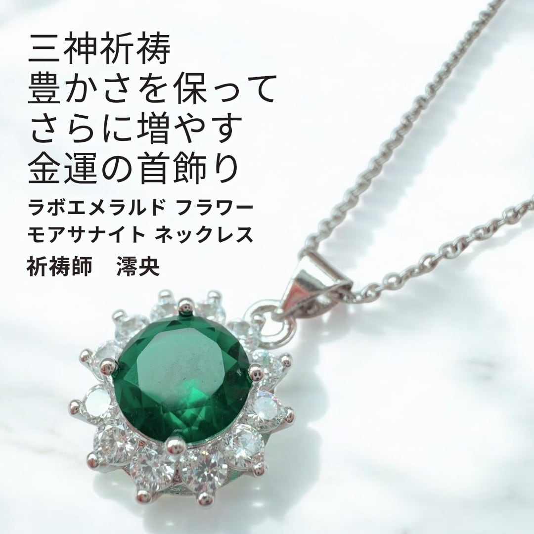 祈祷師 澪央 増幅する金の鎖 増やしてまもる ラボエメラルド フラワー モアサナイト ネックレス 金運財運 龍神社 祈祷【開運・金運・財運・成長運】ペンダント 大粒ストーン