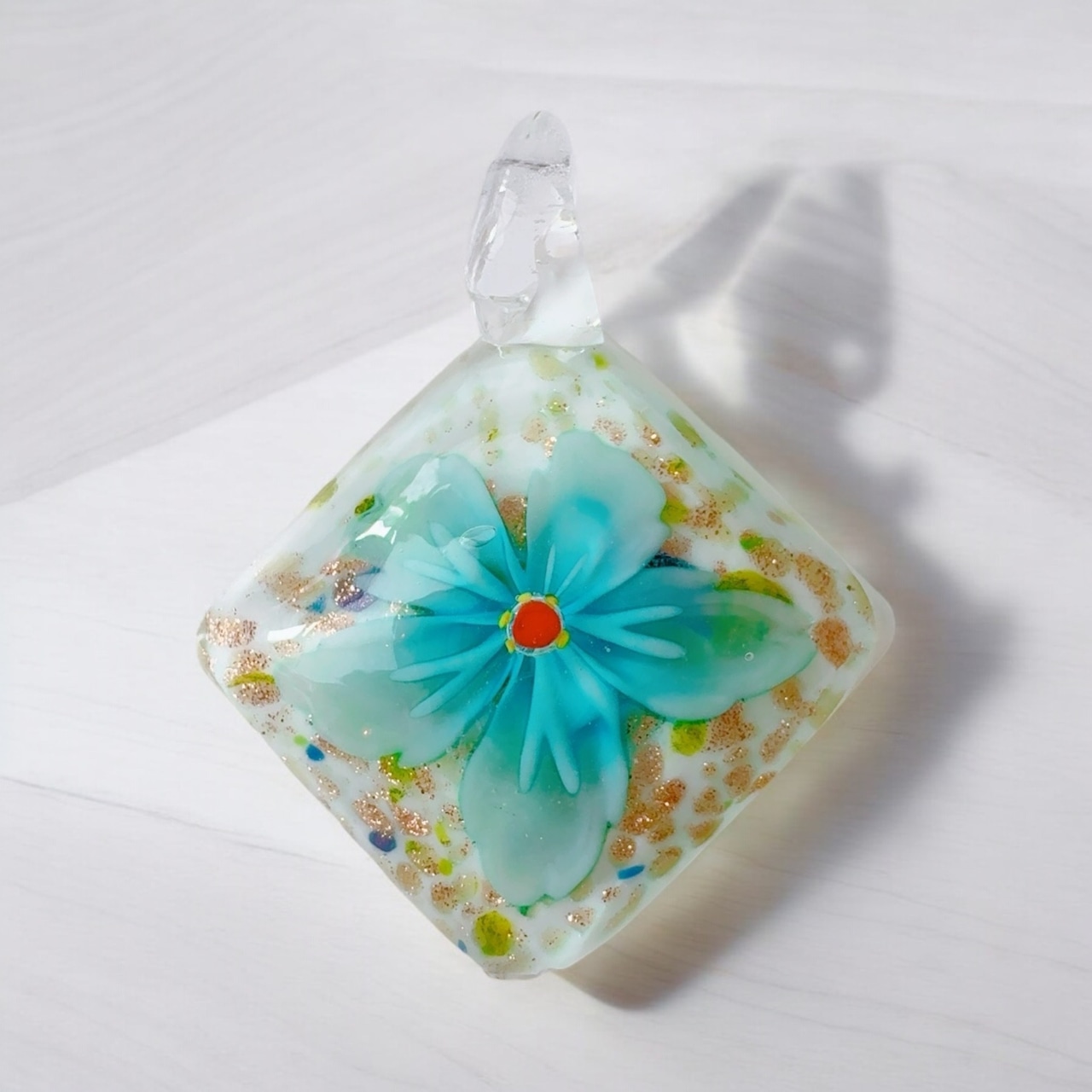 Y365 ユタが送念 幸運を呼ぶ 金運が上向く 太陽の守護 てぃだの金珠 お守り スクエア ガラスチャーム 沖縄 キーホルダー 海 お守り 祈祷 金運 財運 幸運 強力