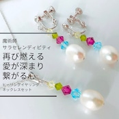 S220 燃え上がる 「再熱」大粒パール ヒーリングイヤリング ネックレスセット サラ・セレンディピティ ウィッカの3つの魔法 真珠 Pearl 2WAY お守り プレゼント