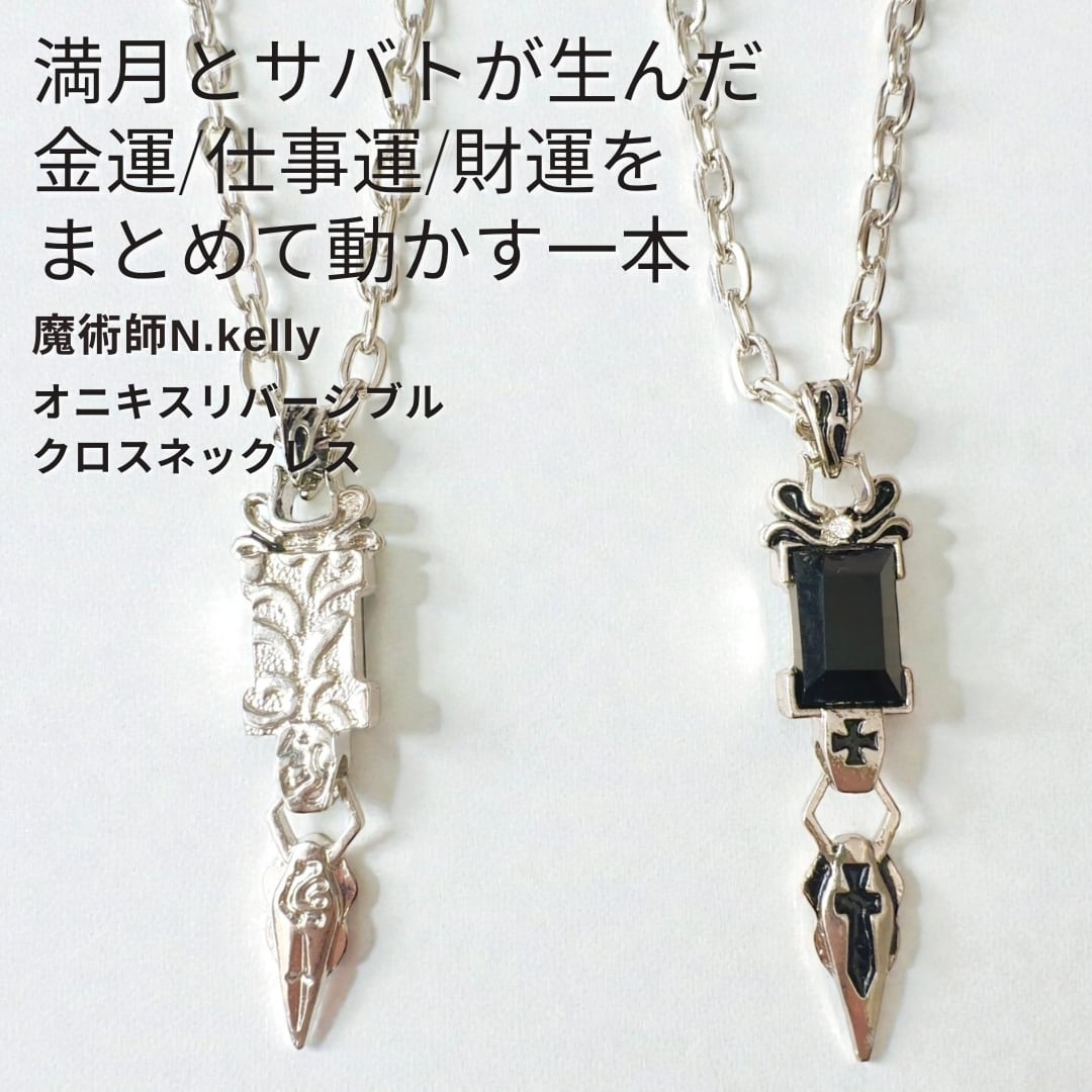 K371 金運・財運をUP 極上の人生へ ペルセウスの魔術ネックレス ユニセックス オニキス クロス 男女兼用 ロングネックレス 魔術師 N.kelly 白魔術 十字架 モチーフ 開運 魔術 アクセサリー 開花 お守り アミュレット ロザリオ