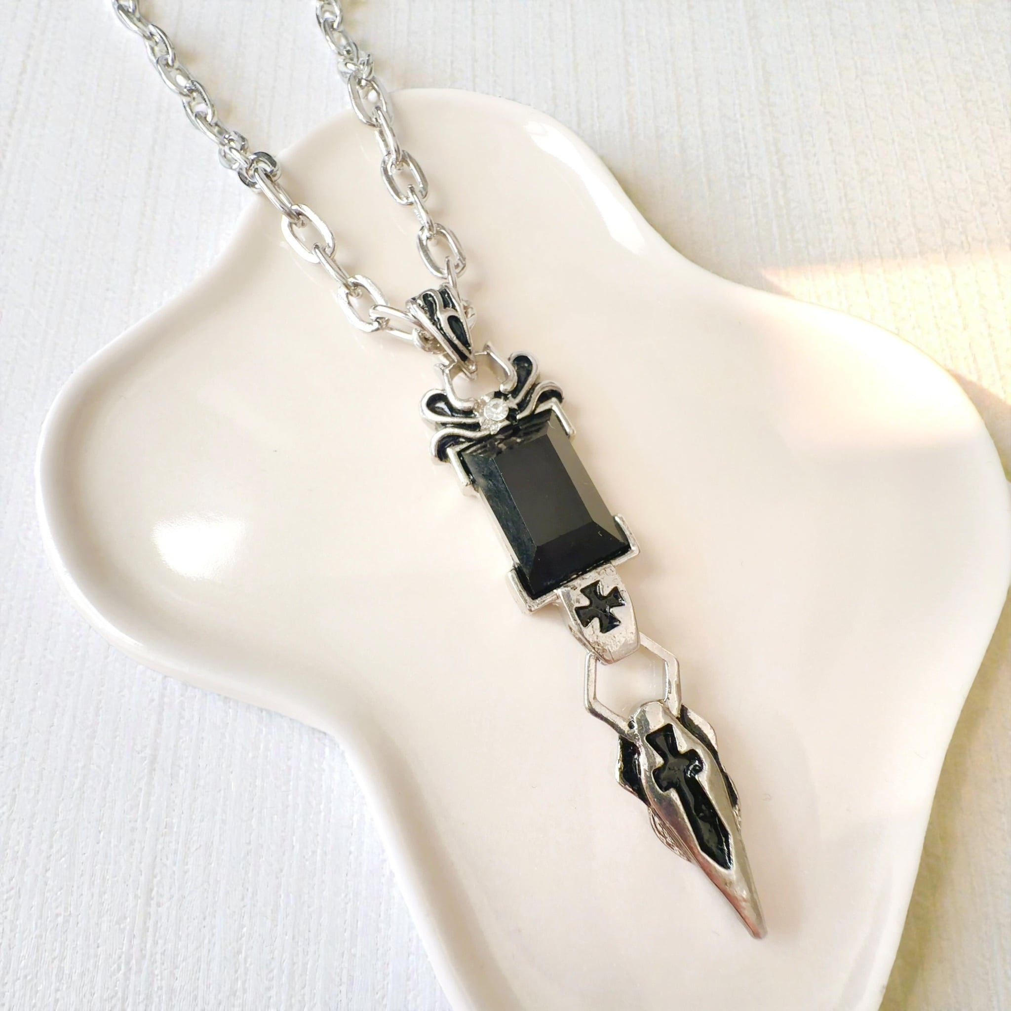 金運・財運をUP 極上の人生へ ペルセウスの魔術ネックレス ユニセックス オニキス クロス 男女兼用 ロングネックレス