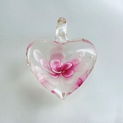 Y153 ユタが送念 厄払い 恐怖払拭 太陽の守護 てぃだの衛珠 あなたの身を守る お守り ハート ガラスチャーム 花 ピンク Flower 厄除け 災難除け ブロック 幸運 CHANGE ペンダントトップ 護符