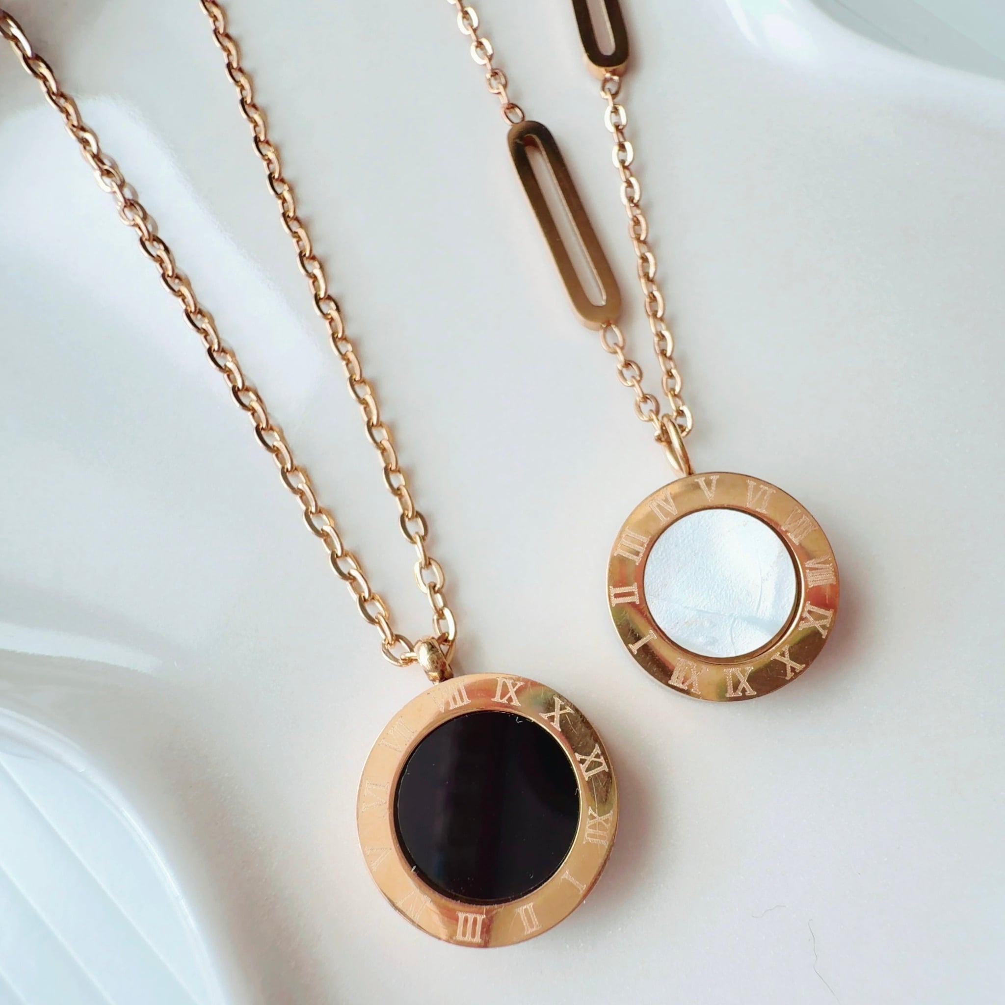 ふたりの愛を結びつける 運命の刻印【愛縁祈祷】オニキス マザーオブパール ローマンサークル リバーシブル ペア ネックレス 祈祷師 澪央