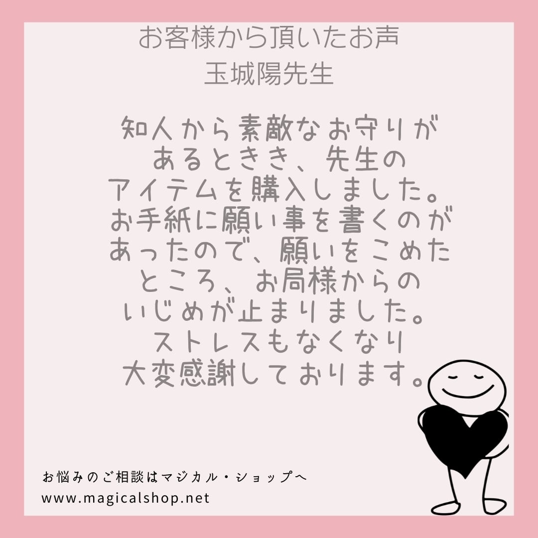 日々の生活の中で、第三者から受ける苦痛やストレスを解放し、気持ちを前向きに導いてくれるアイテムです。
