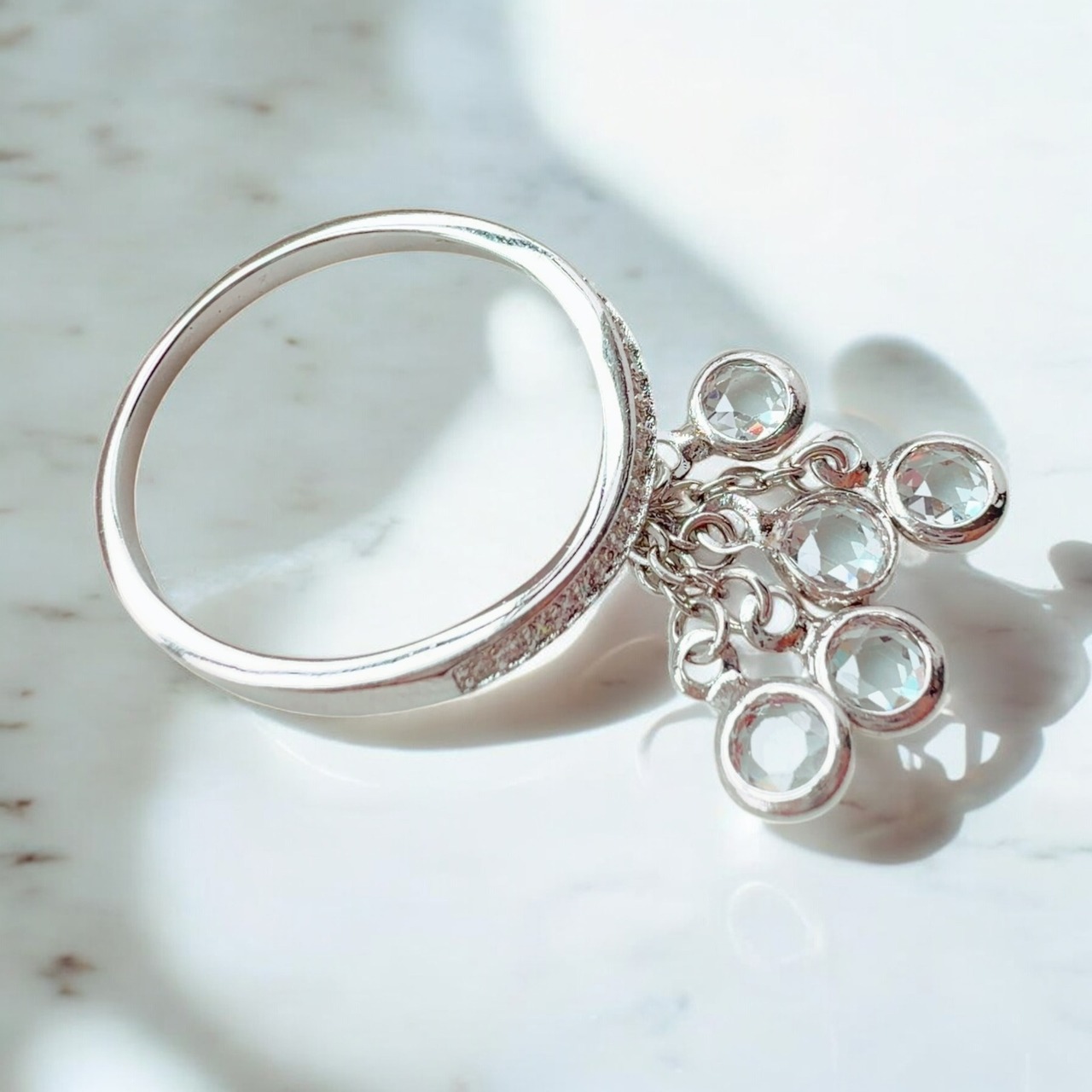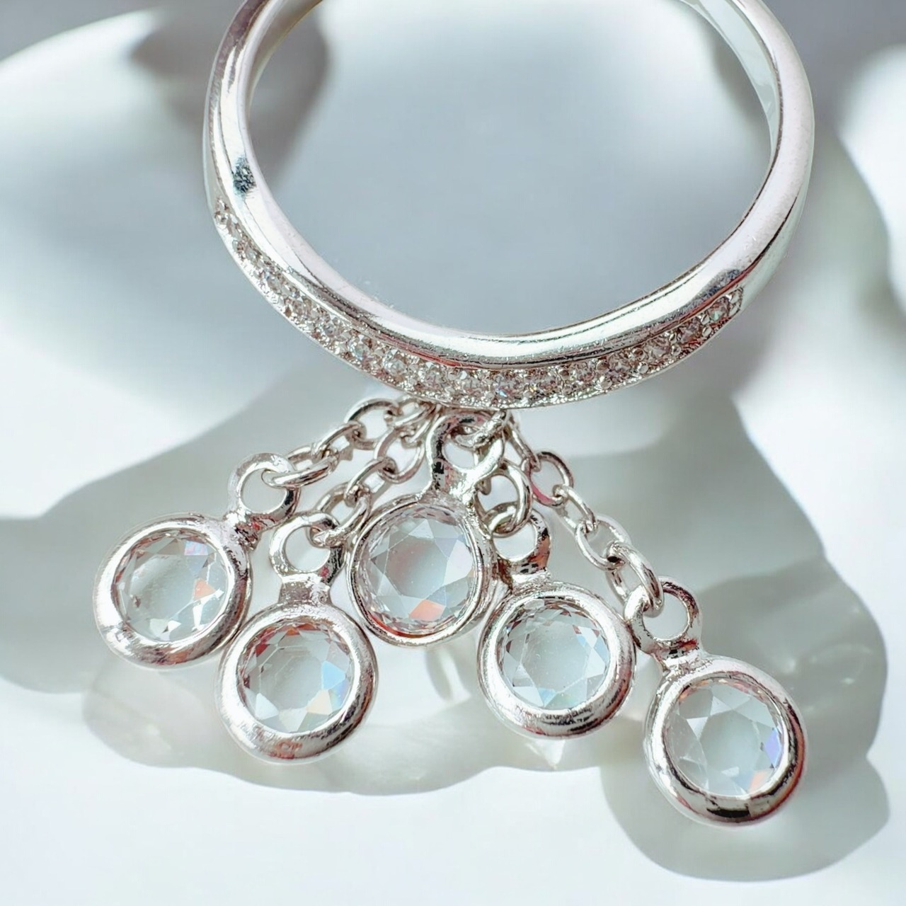 透明感のある美しいストーンが指先で揺らめき、見る角度によって光を取り込みながら、あなたの魅力を際立たせます。