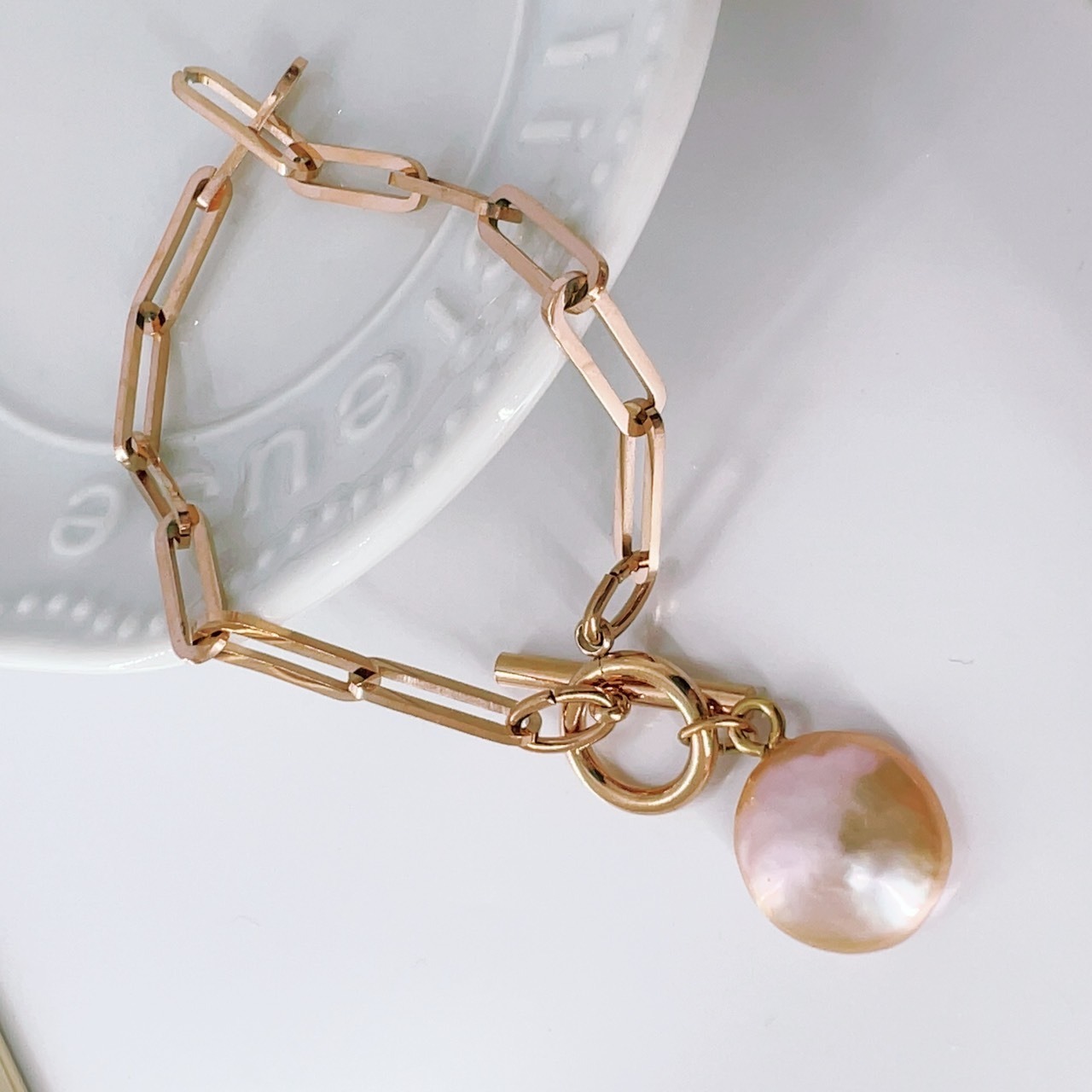 愛に溢れ 誰よりも幸せに 価値のある人生へ 子宝 淡水パール マンテルチェーン ブレスレット コインパール