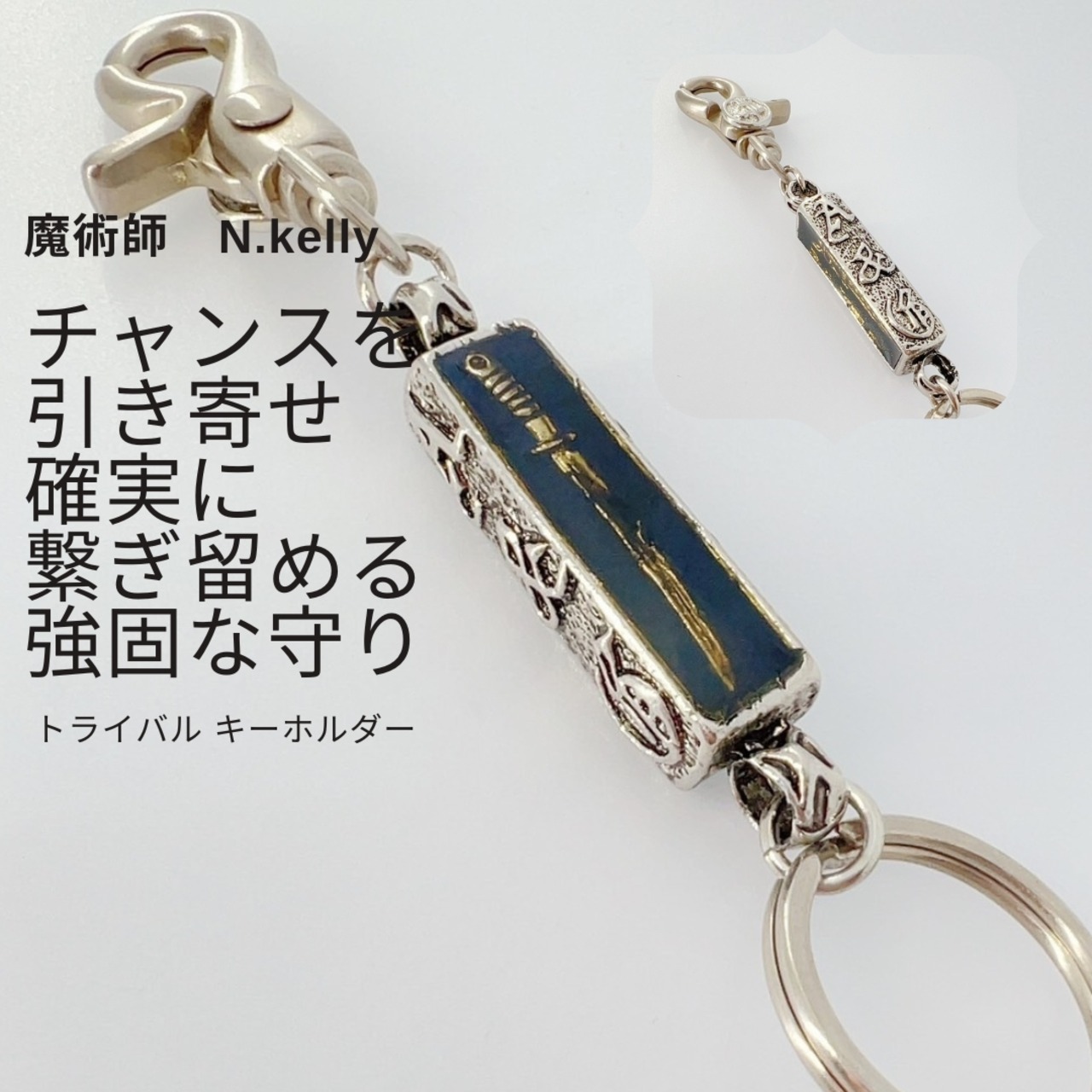 K436 チャンス到来「絶好調」トライバル キーホルダー N.kelly製作 金運 財運 キャリアアップ 魔術 強力 本物 お金と仕事 ユニセックス 男女兼用 Black メンズ