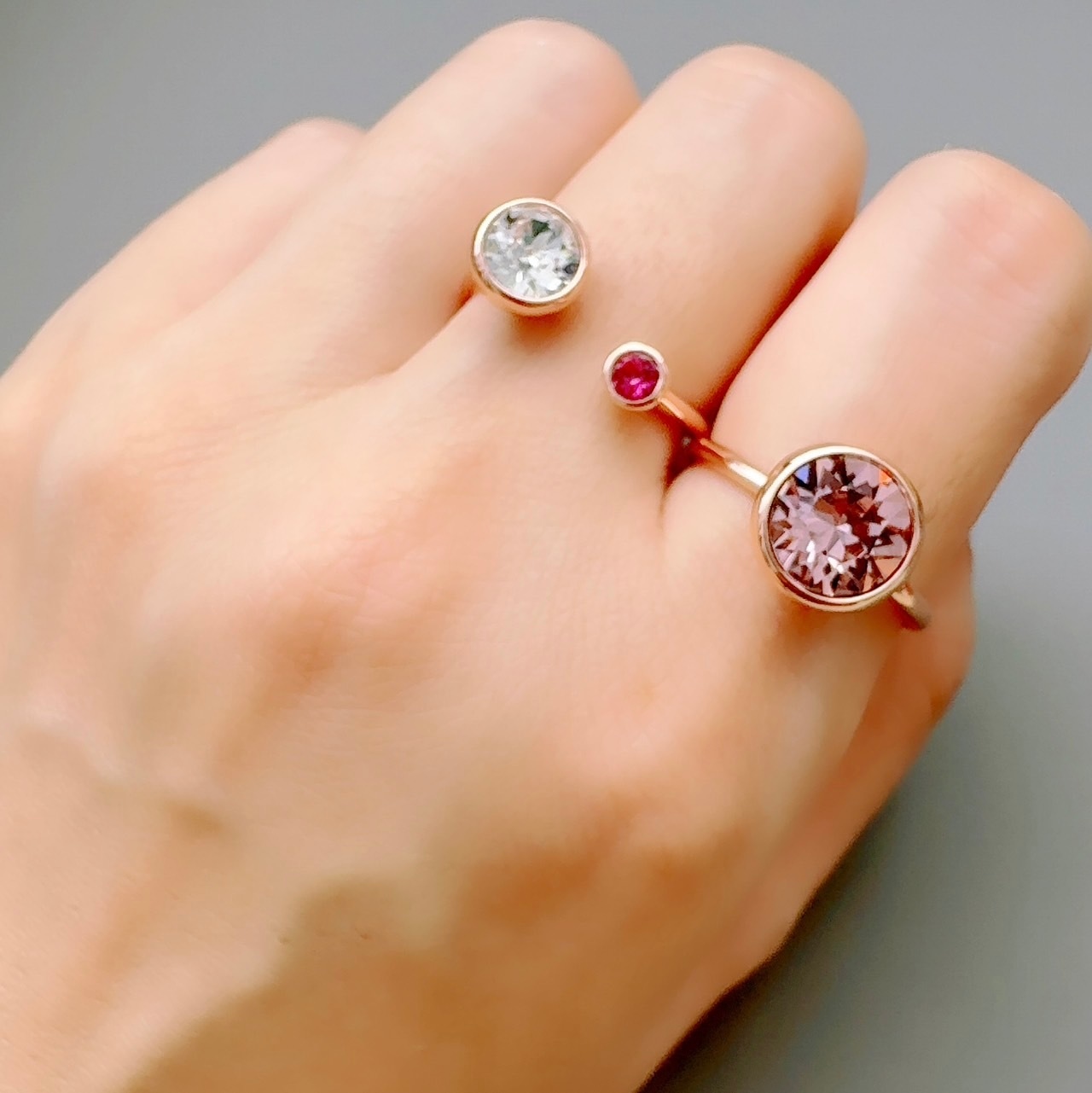 水滴をイメージさせるデザインリングは、キラキラ眩い輝きの3石のスワロフスキークリスタルをセッティングし、人脈を劇的に強化し人間関係を改善させるエネルギーをセットしていただきました。