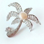 大きな実をつけるヤシの木に、大きく光輝くマベパールとスワロフスキーをセッティングしたブローチには、今の状況を一変させツキを復活させ繁栄へと導く強力なエネルギーをセットしています。
