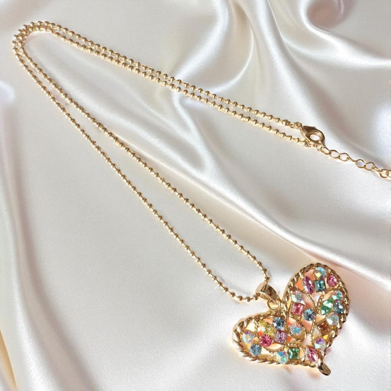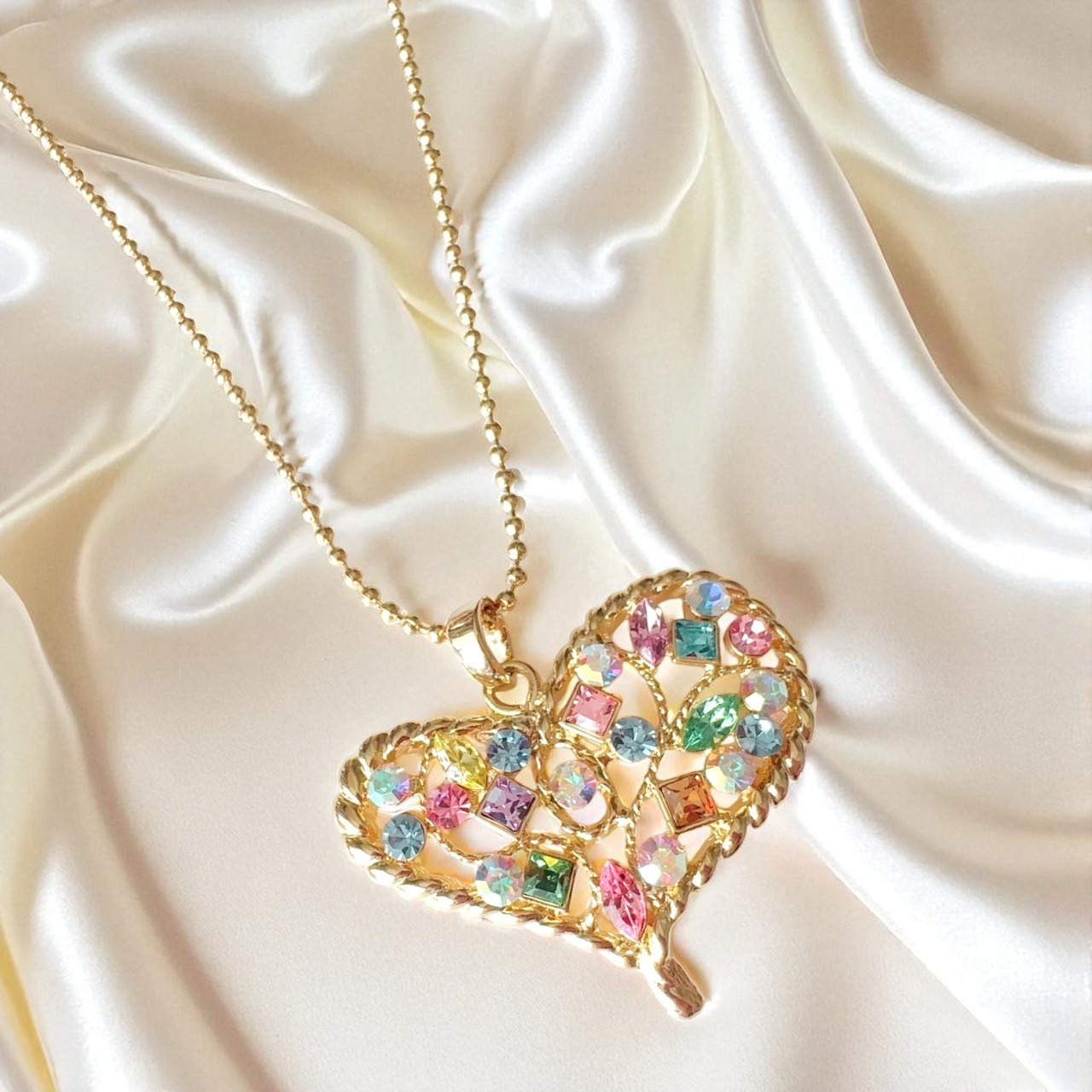 エナジーリアライン 人間関係と運の流れを整える 人からもお金からも愛されたい 開運 マルチカラー オープンハート スワロフスキー ロングネックレス