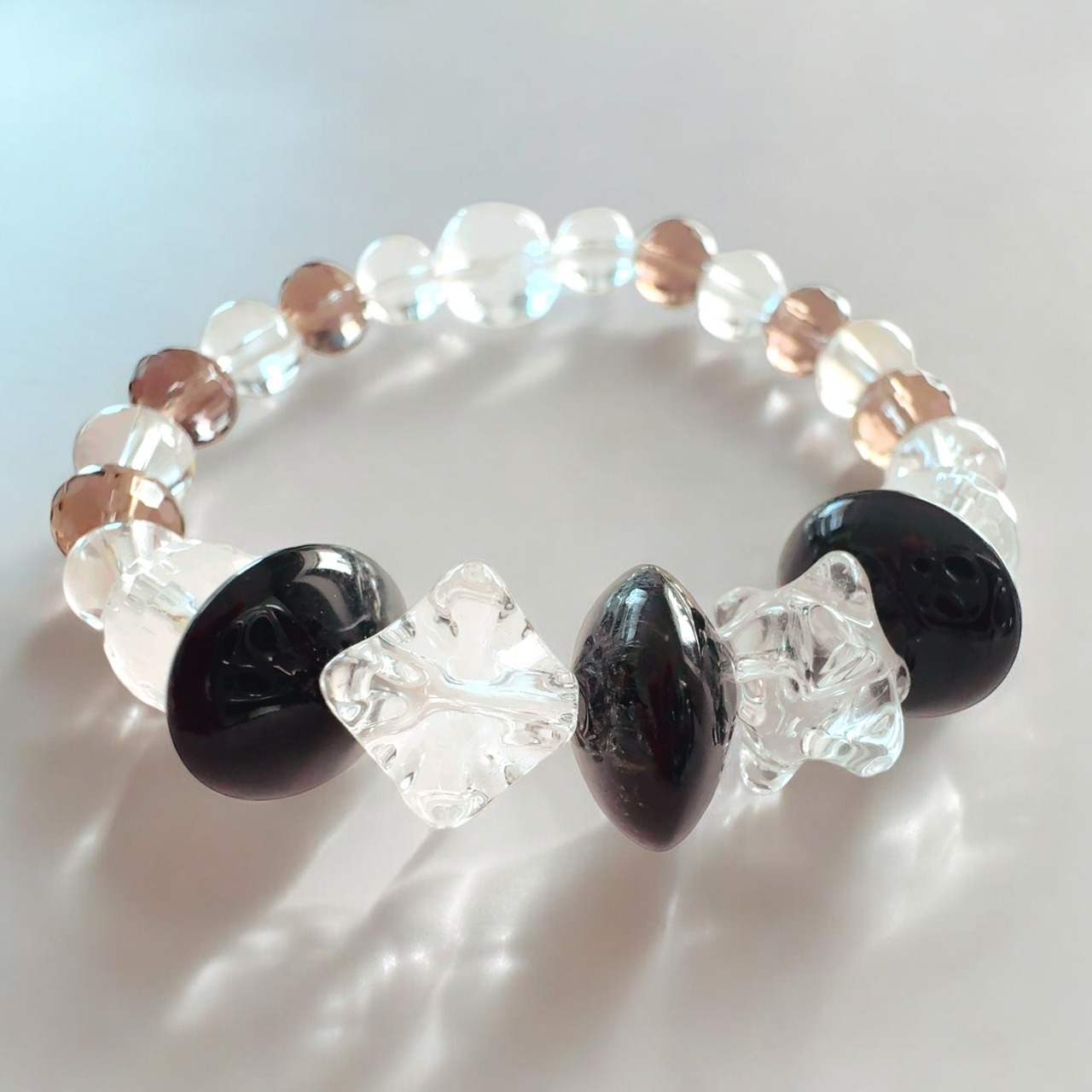 オニキスの煌めき 経済的な成功の実現 富の絆ブレスレット 金運召致 開運 スタークリスタル オニキス スモーキークォーツ ブレスレット