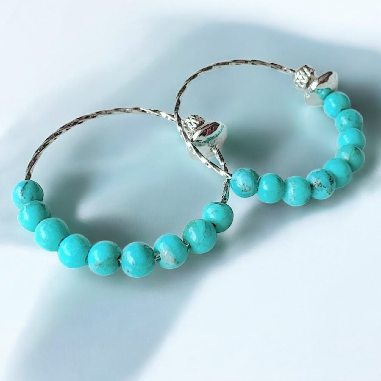 災いを払い幸運を呼ぶ「ターコイズ」を用いたフープイヤリングには、特別な魔術を施し、エネルギーを書き換えるためのエネルギー改革魔術をセットしています。