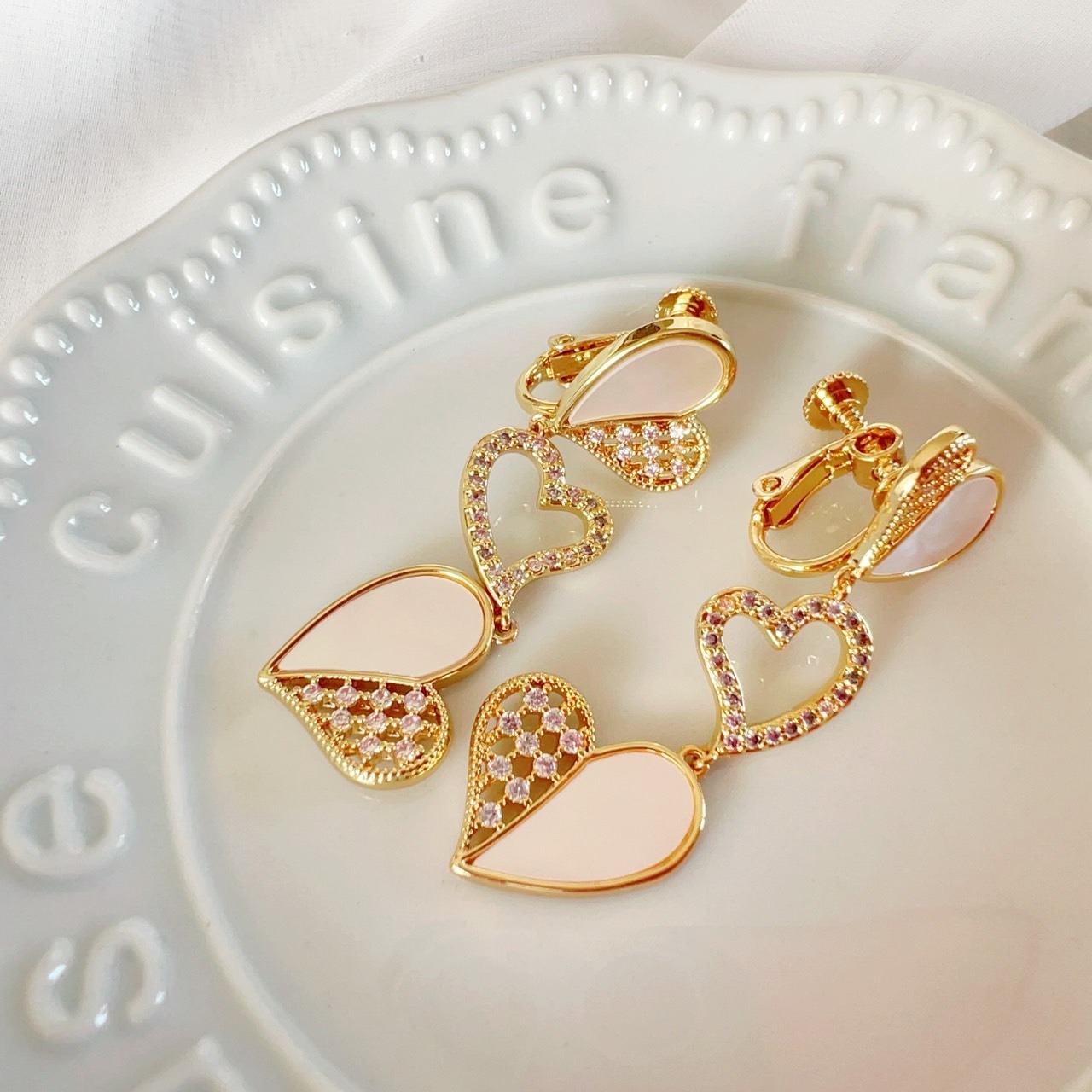 もう一度愛し合う 結び直しひて離れない リトライ 揺れる スリーハート ピアス イヤリング シェル マチュラダイヤモンド 復縁 サラ・セレンディピティ