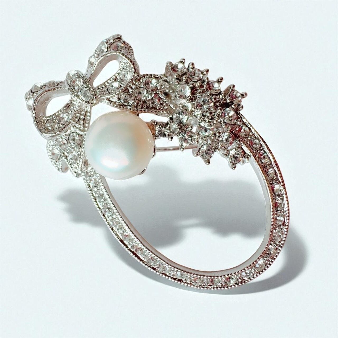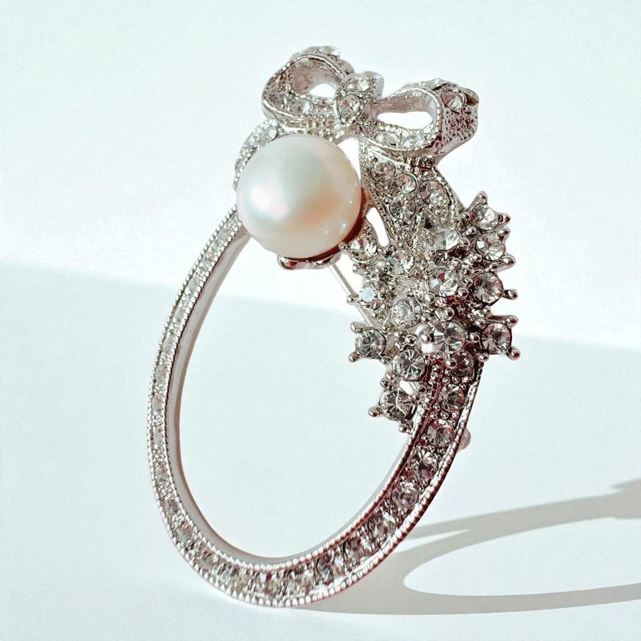 美しさを手に入れる モテ女へ 月魔法「愛の神エロス」恋愛運UP 大粒パール リボン フレーム オーバル ブローチ