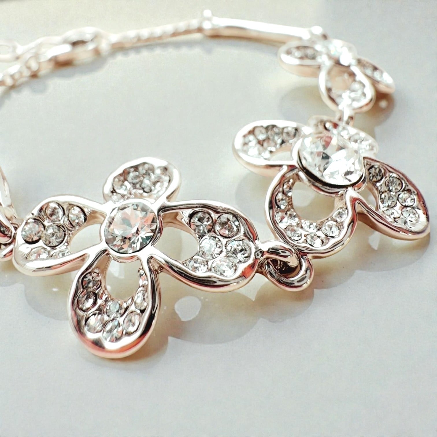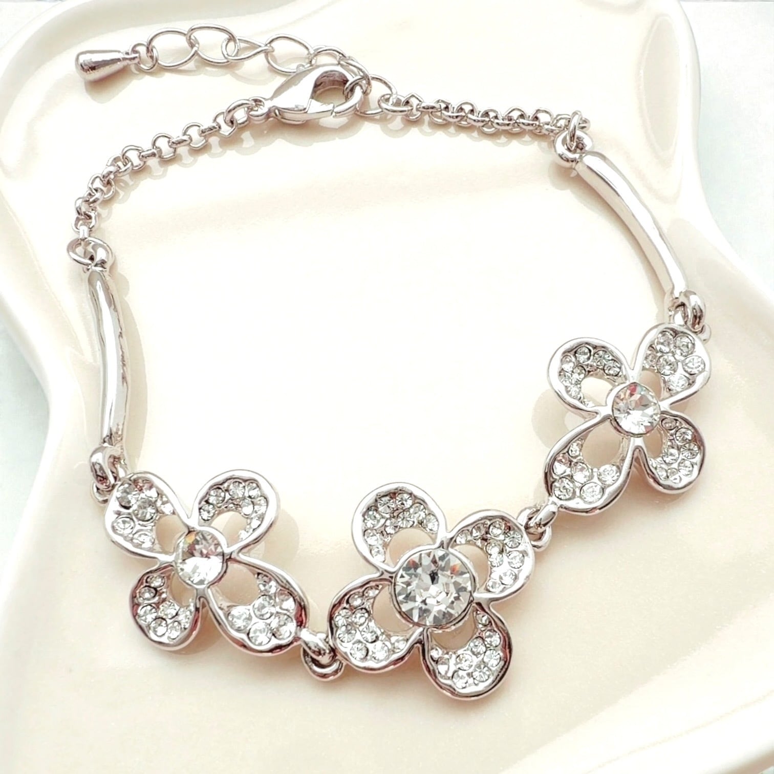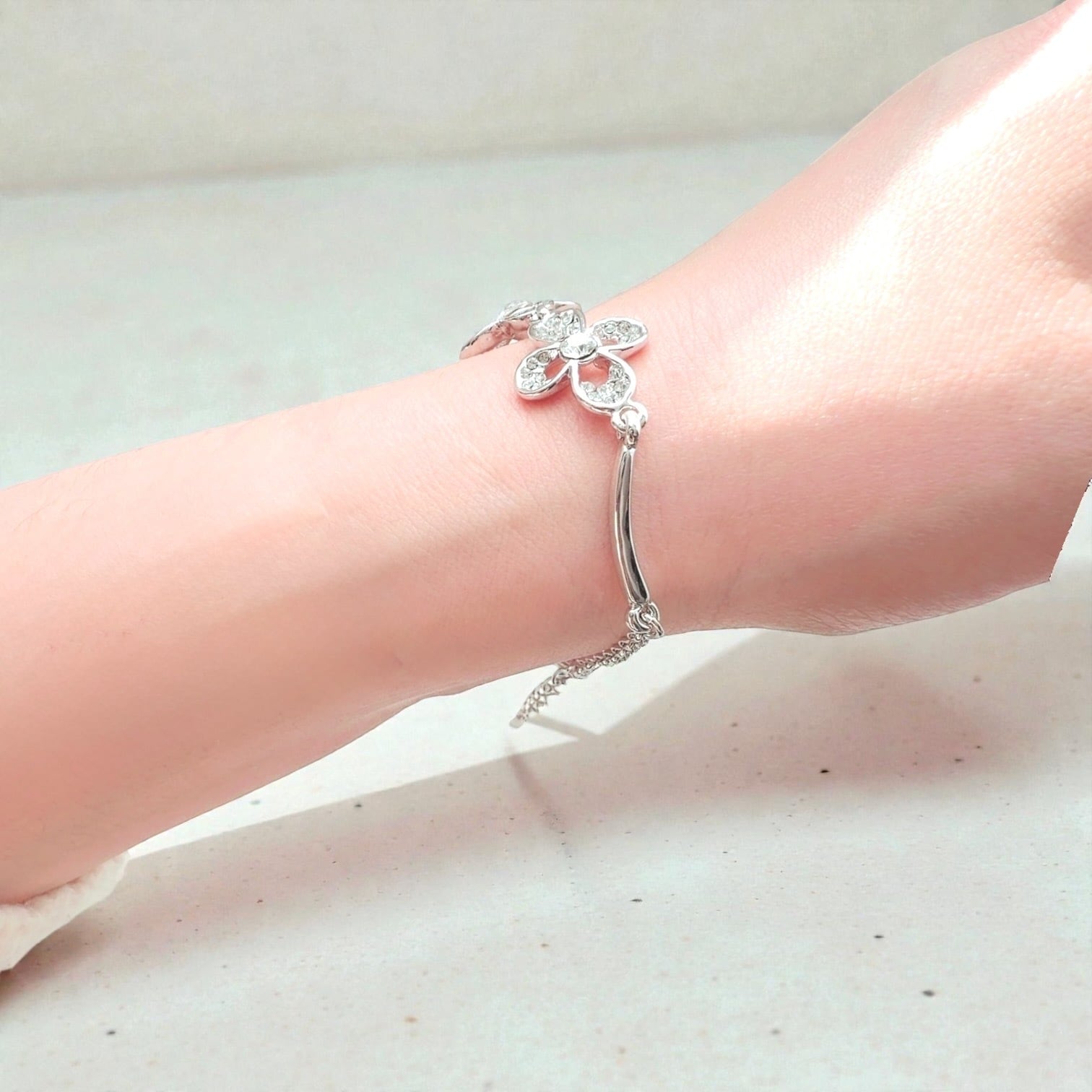 美しく光り輝くフラワーをモチーフにしたブレスレットは、まるでお花のブーケを身に着けているかのよう。