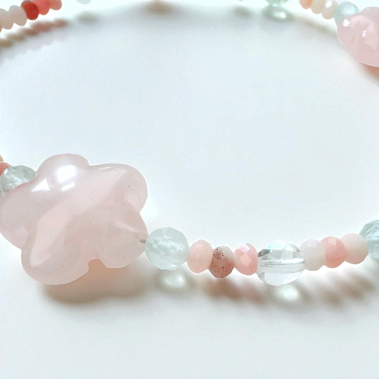 M49 叶花輪 自在に手にする「金運と幸運」 魂を浄化し 幸せを掴む パステルマルチカラー パワーストーン フラワー ブレスレット クリスタル ローズクォーツ アクアマリン ピンクオパール 祈祷師 澪央(みお)祈祷【開運・金運・財運】 水晶 祈祷 お守り 財運 成就 成功 人間関係 円満 縁結び 幸運 霊感霊視 スピリチュアル 強運 神社 神様 災厄
