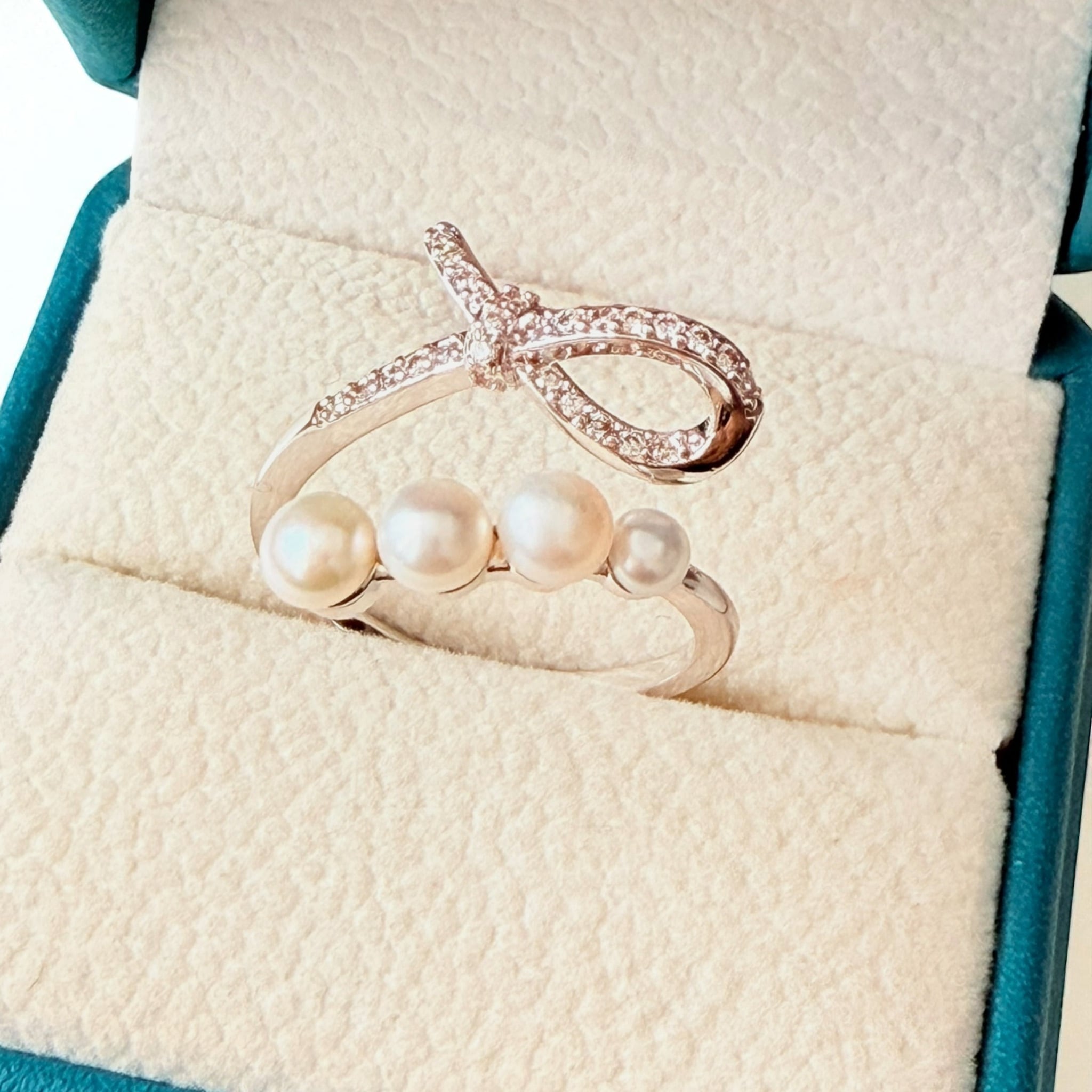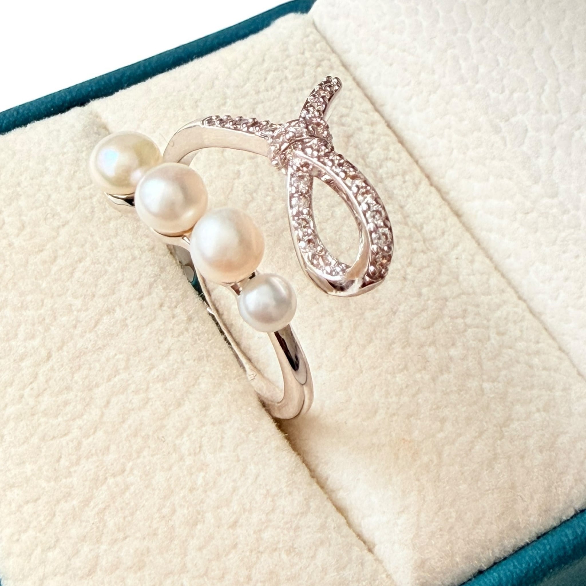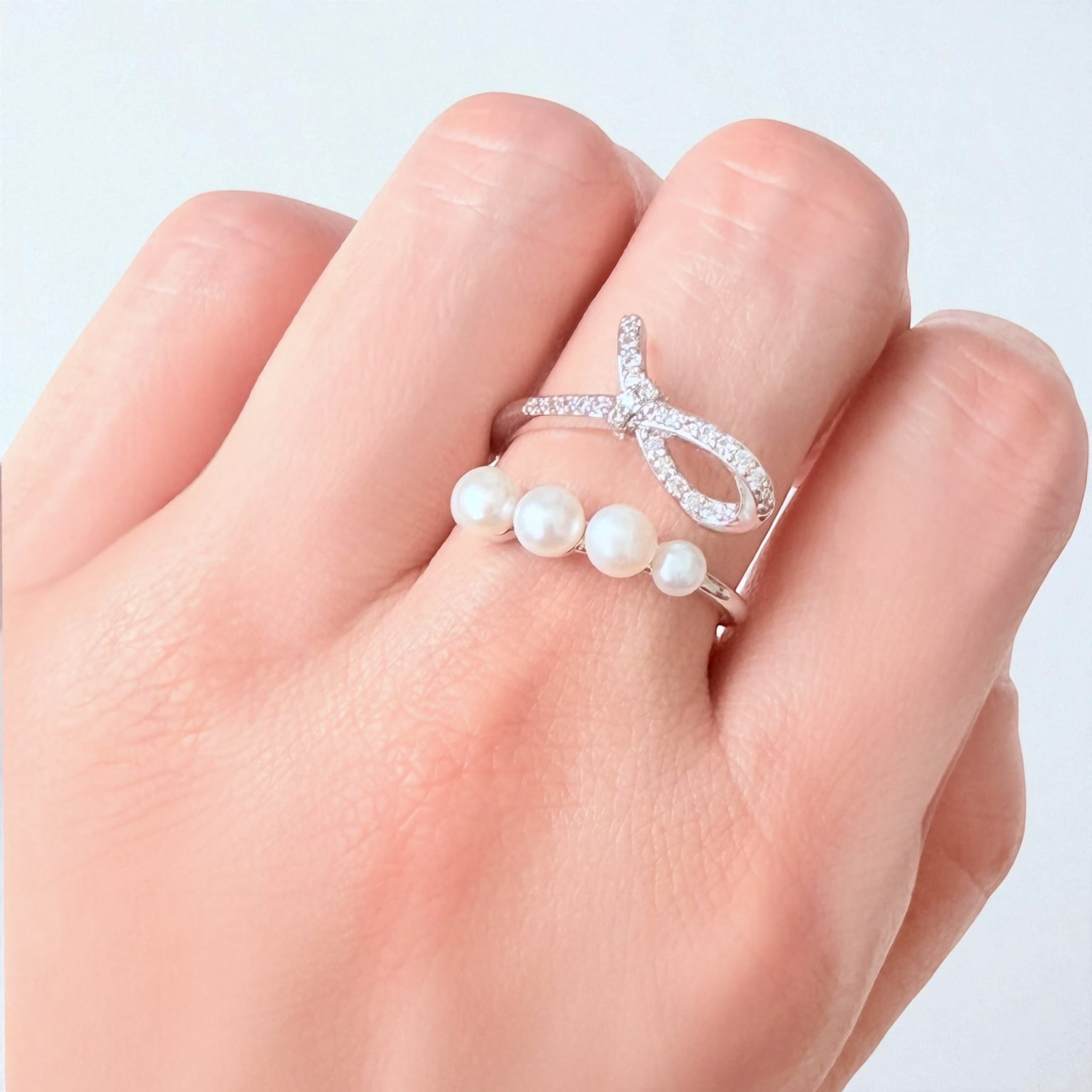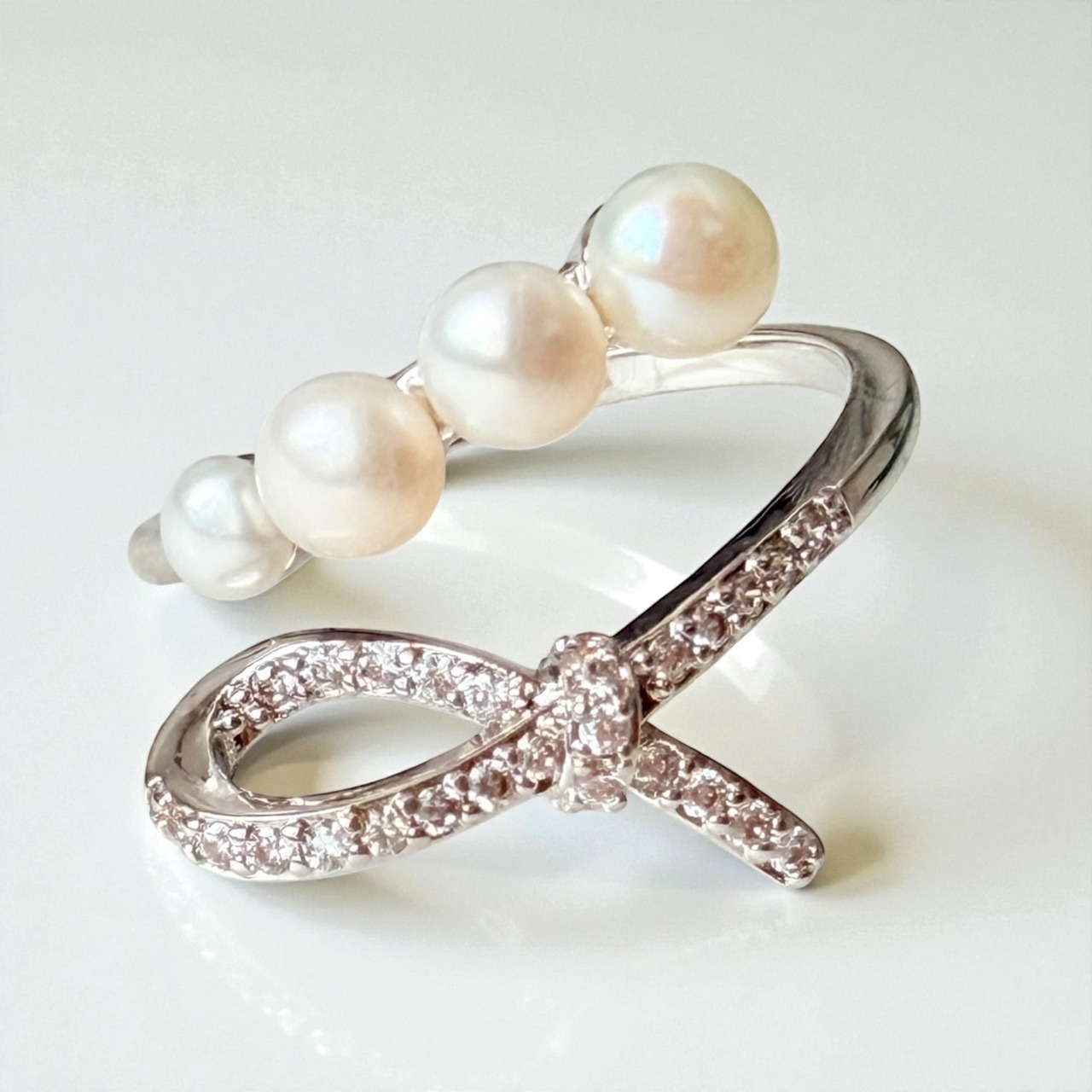 結びのパワーでモテ力アップ リボンが輝く 縁結び【恋愛運】ノットリボン 淡水パール マチュラダイヤモンド リング