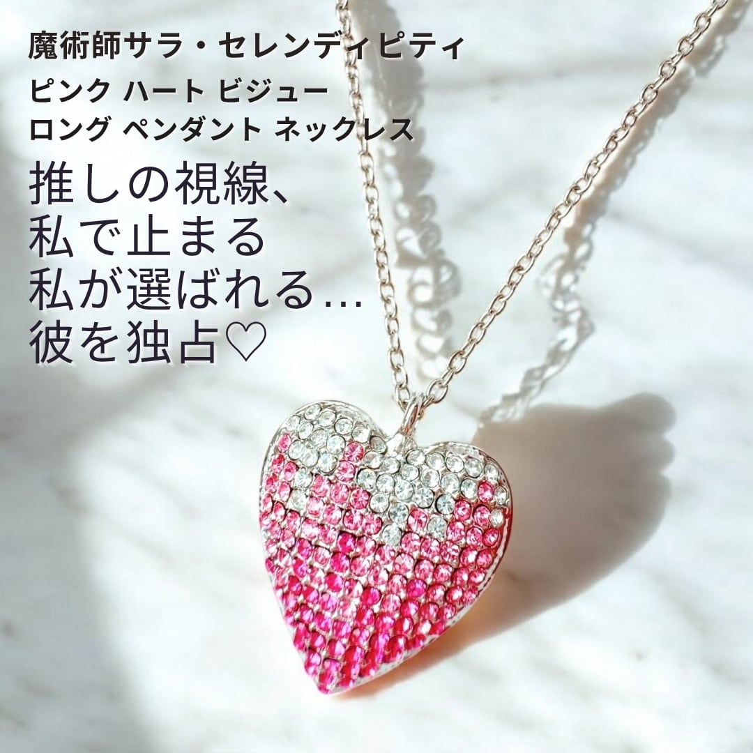 S2 推しに好かれたい 私が選ばれる 距離が縮まる ピンク ハート ビジュー ロング ペンダント ネックレス ウィッカの3つの魔法 魔術師 サラ セレンディピティ 魔術 アクセサリー マチュラダイヤモンド パワーストーン ピンク カワイイ 推し活 オキニ 独占