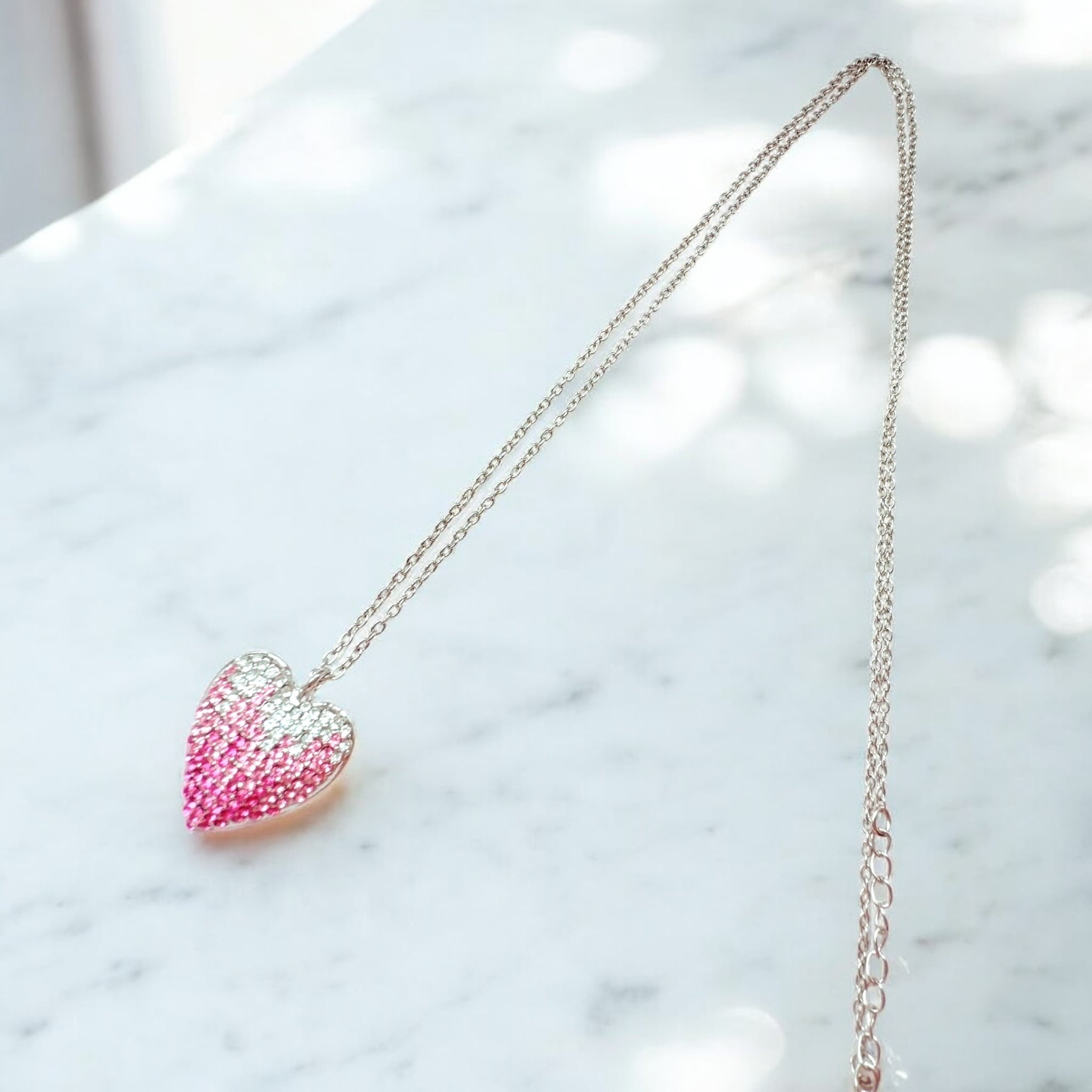 推しに好かれたい 私が選ばれる 距離が縮まる ピンク ハート ビジュー ロング ペンダント ネックレス