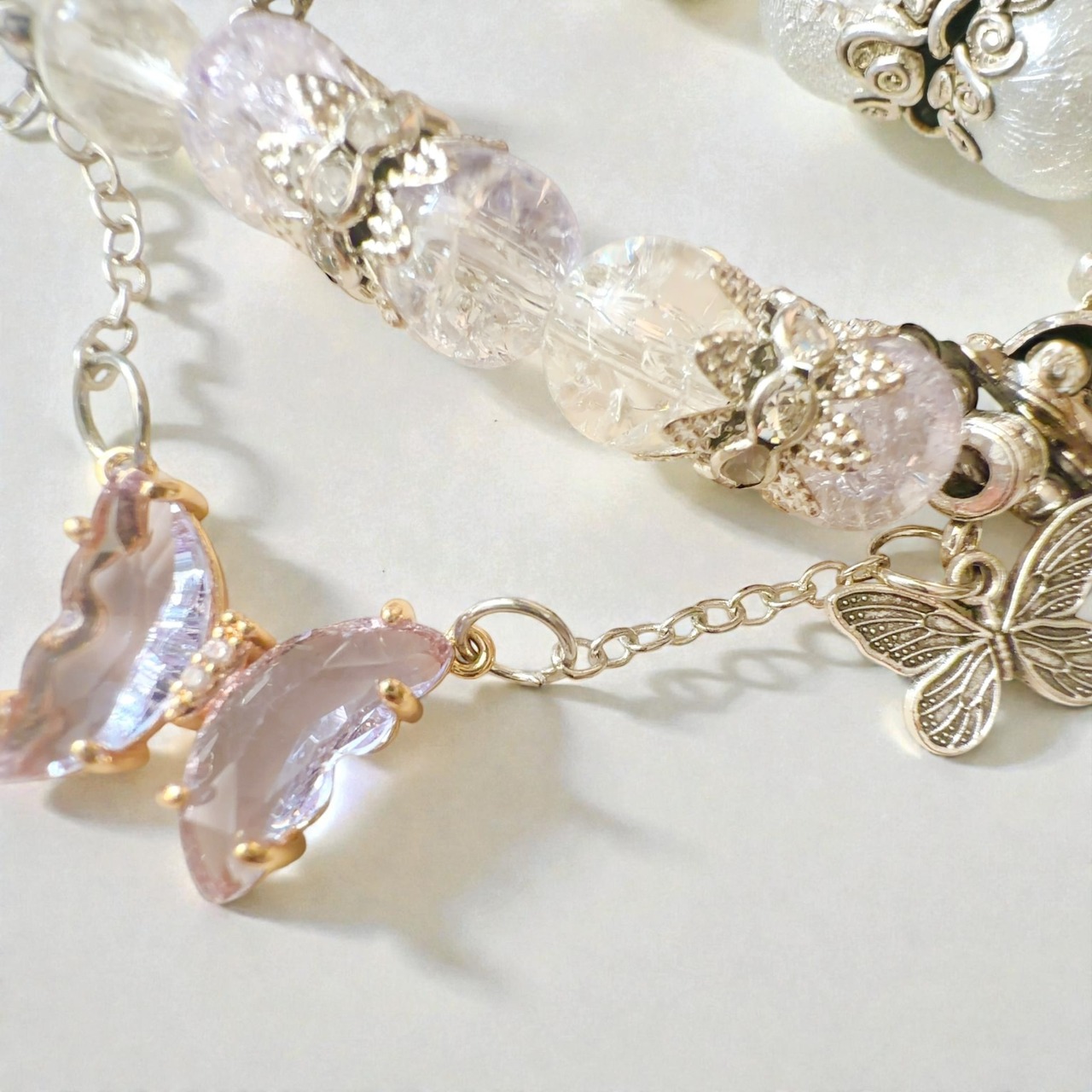 バタフライのストーンが煌めくこのブレスレットは、美しく舞う蝶のように、あなたの内なる魅力を呼び覚まし、身に着けた瞬間から全身に輝きを纏わせます。