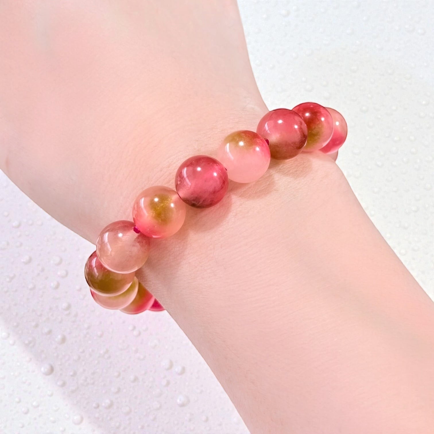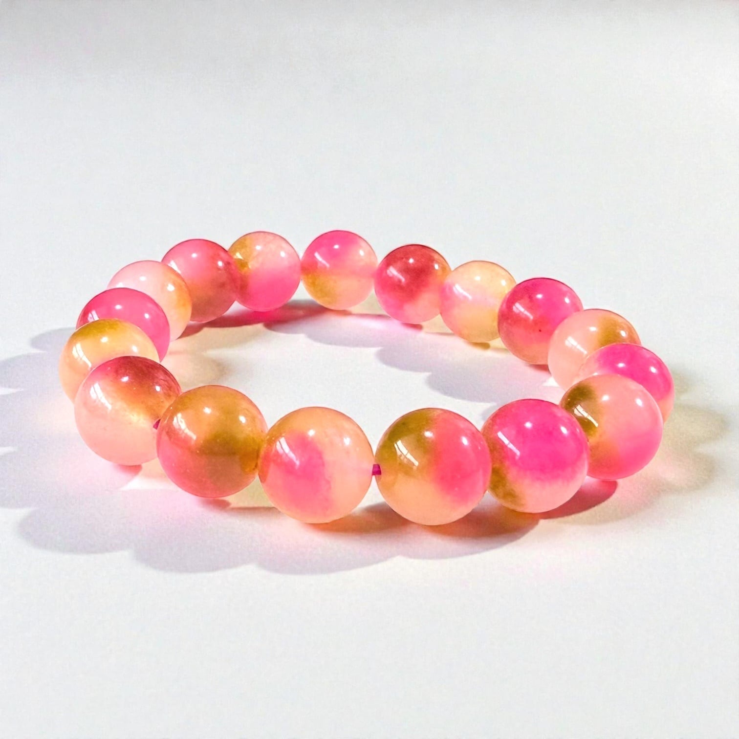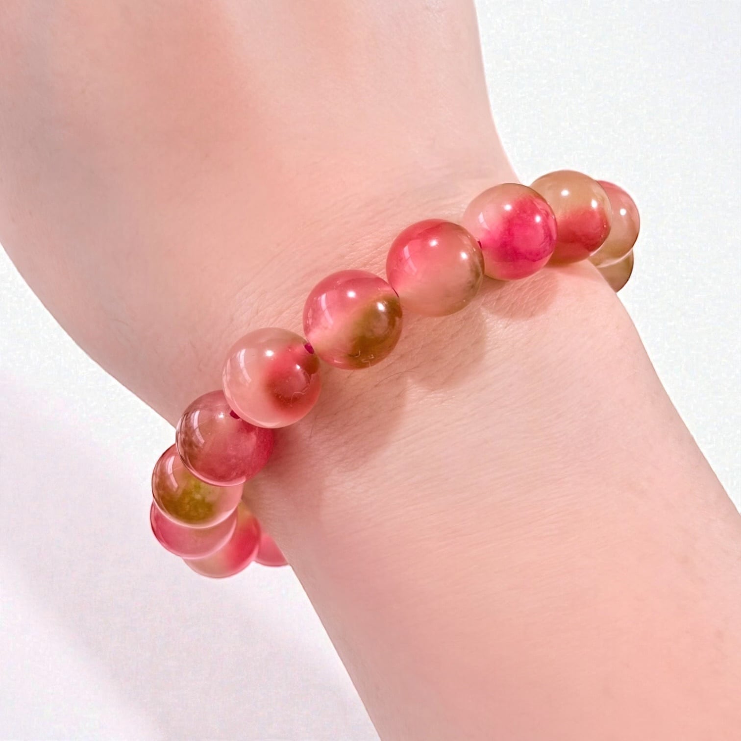 さ78 風水で叶える 思わぬ幸運 【大開運】恋もお金も手に入る 大玉ミルキーカラー レインボーアゲートブレスレット さくら先生 天然石 ピンク グリーン 金運 恋愛運 財運 幸運 願望成就 風水 祈祷 本物 魔法 強力