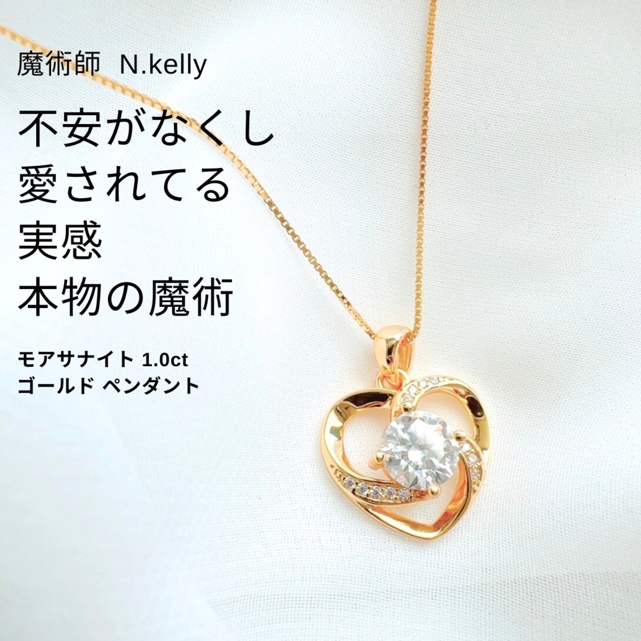 K228 心が繋がる 恋愛不安が無くなる ハートの魔術 大粒 モアサナイト 1.0ct ゴールド ペンダント ネックレス N.kelly製作 モアッサナイト エシカルダイヤモンド 略奪 不倫 三角関係 恋愛運 成就 お守り 叶う 本命 両想い おまもり おまじない 魔術 本物 強力 白魔術 占い 願いが叶う