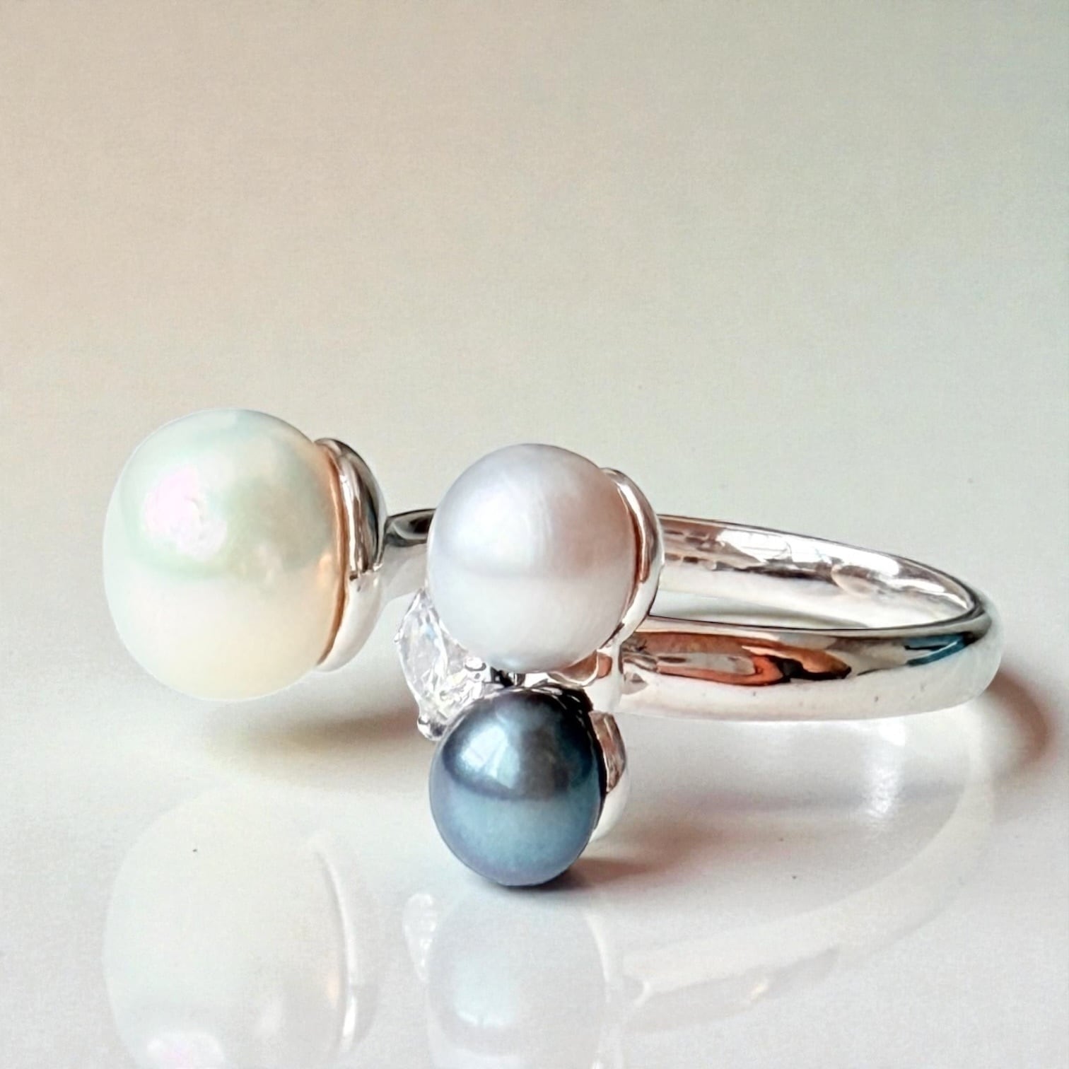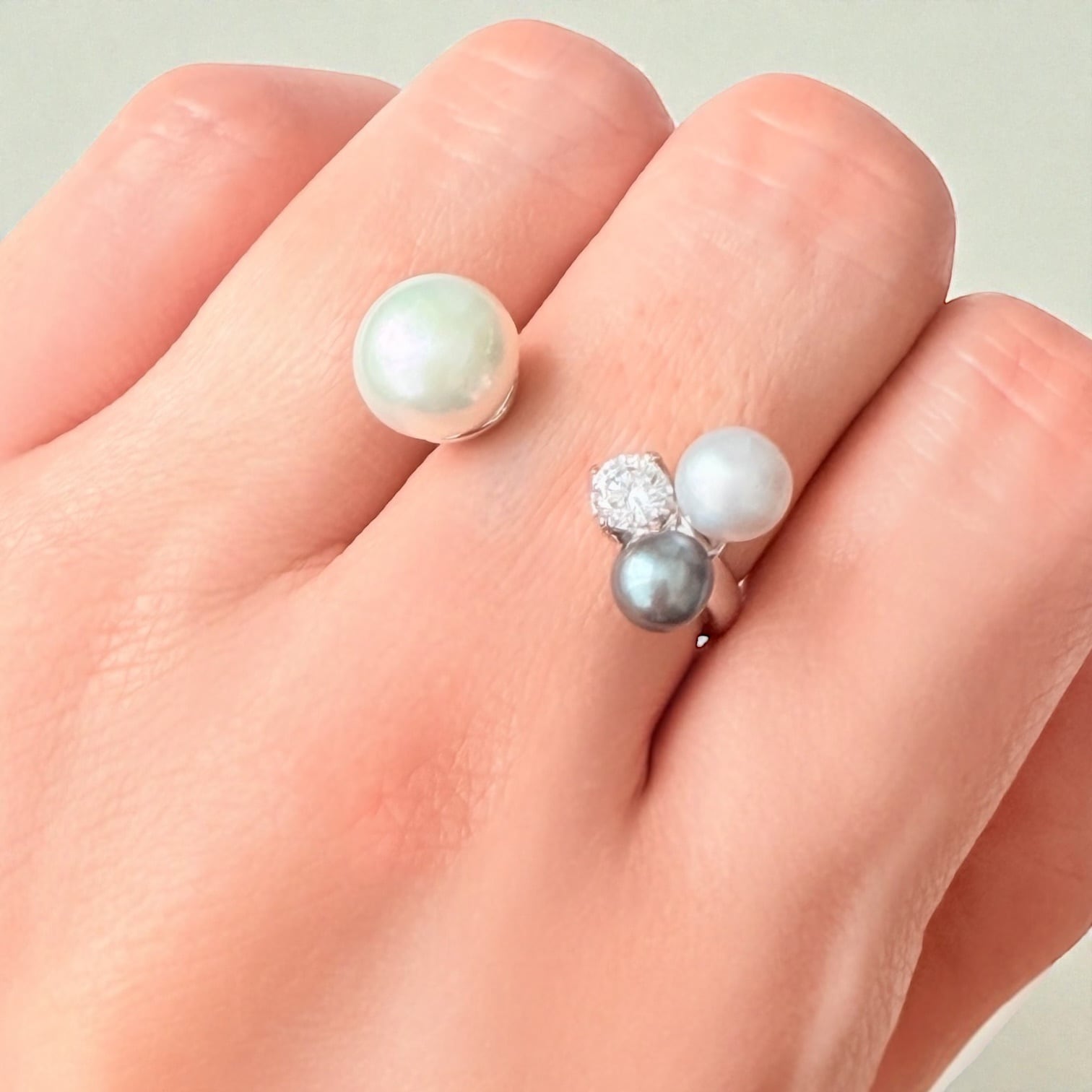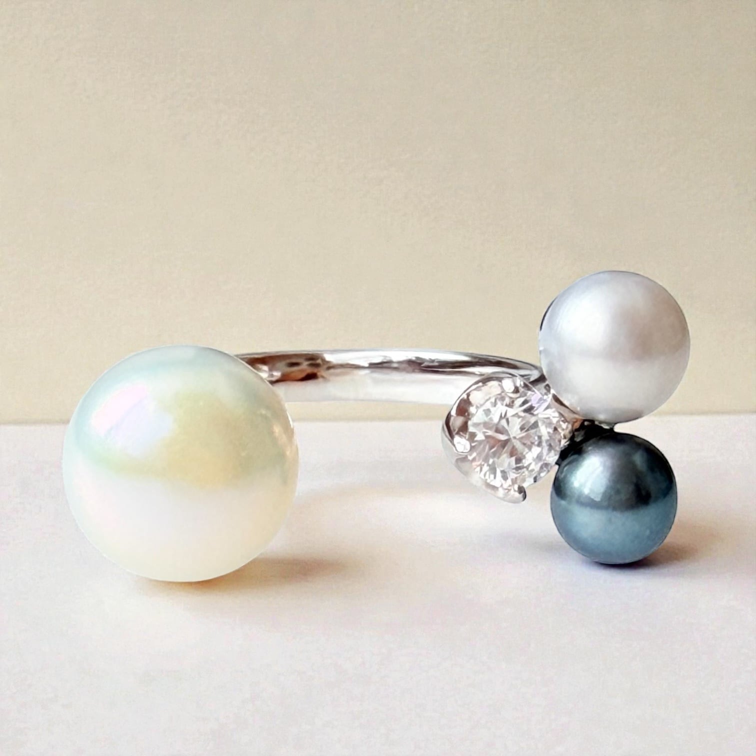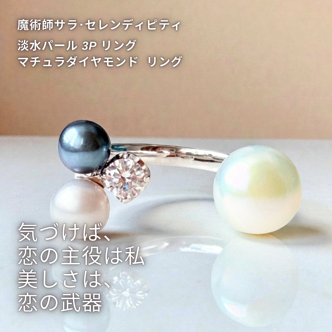 無敵の美意識へ覚醒 印象操作 セクシャルな色気を武器に 信頼を築く 淡水パール 3P リング マチュラダイヤモンド 指輪【美貌・魅力・好感度UP】