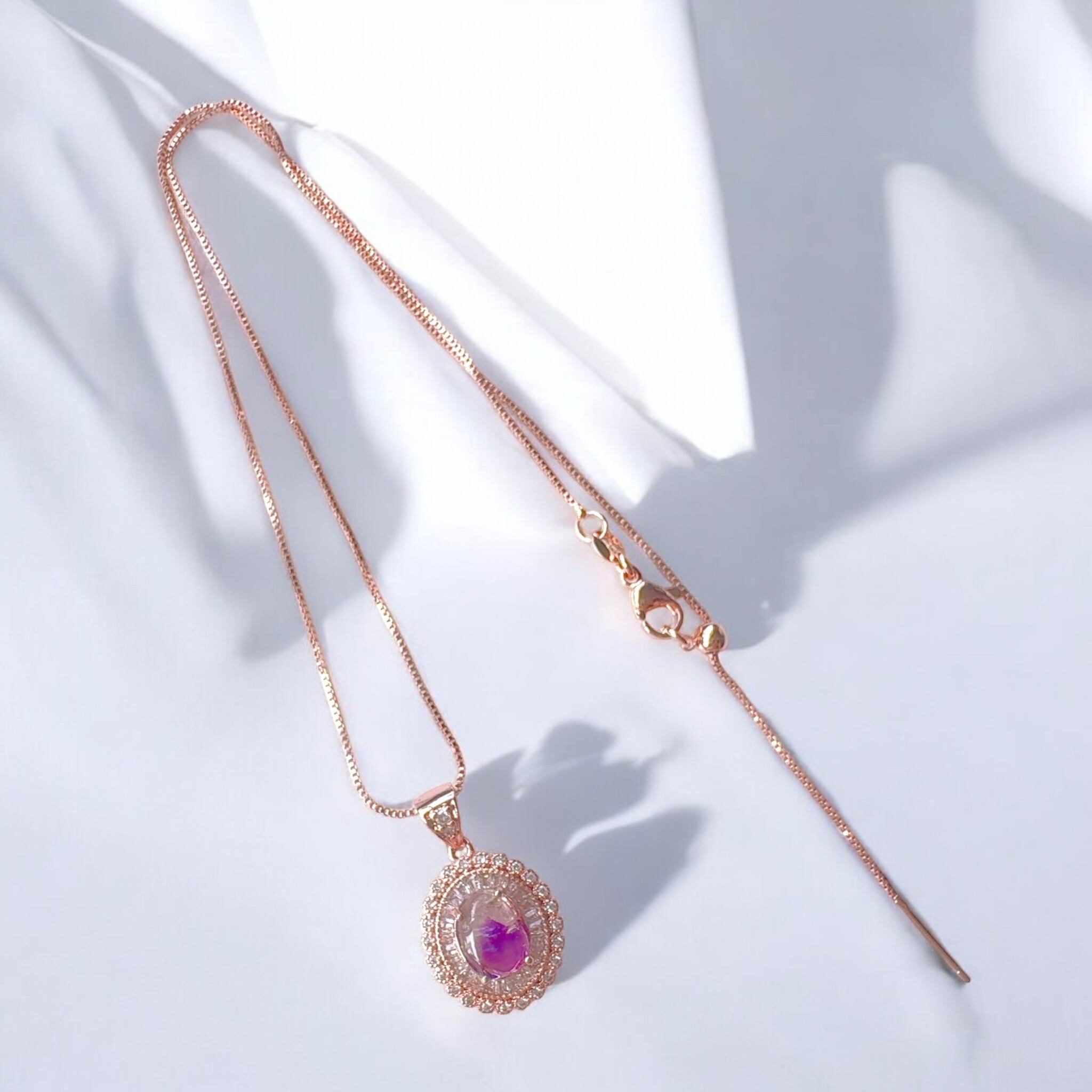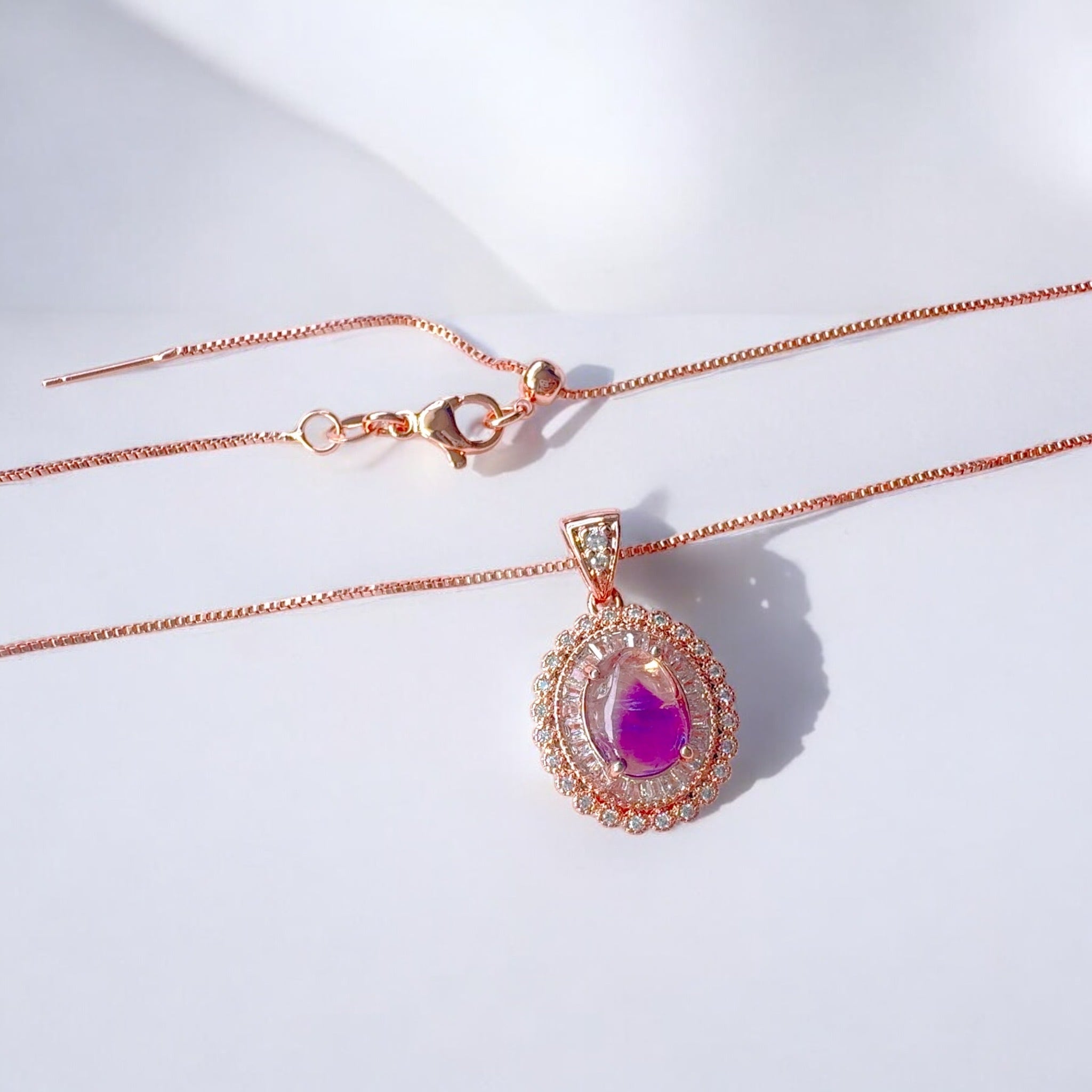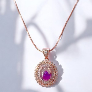 淡いピンクが美しく大粒のスーパーセブンストーンが胸元で揺れるペンダントに、天照大神へ御祈祷を執り行いました。天照大神の御利益を得て強運になりましょう。