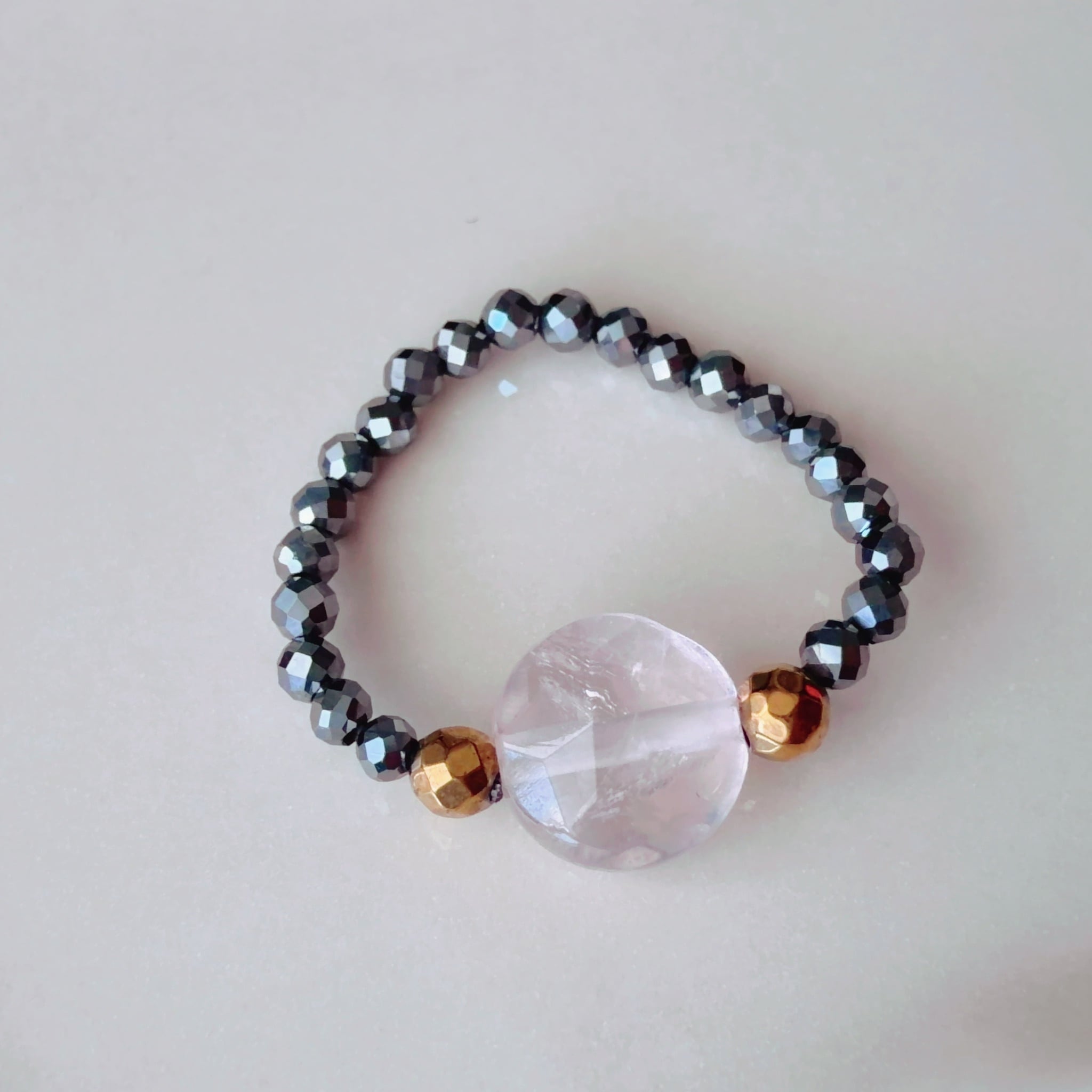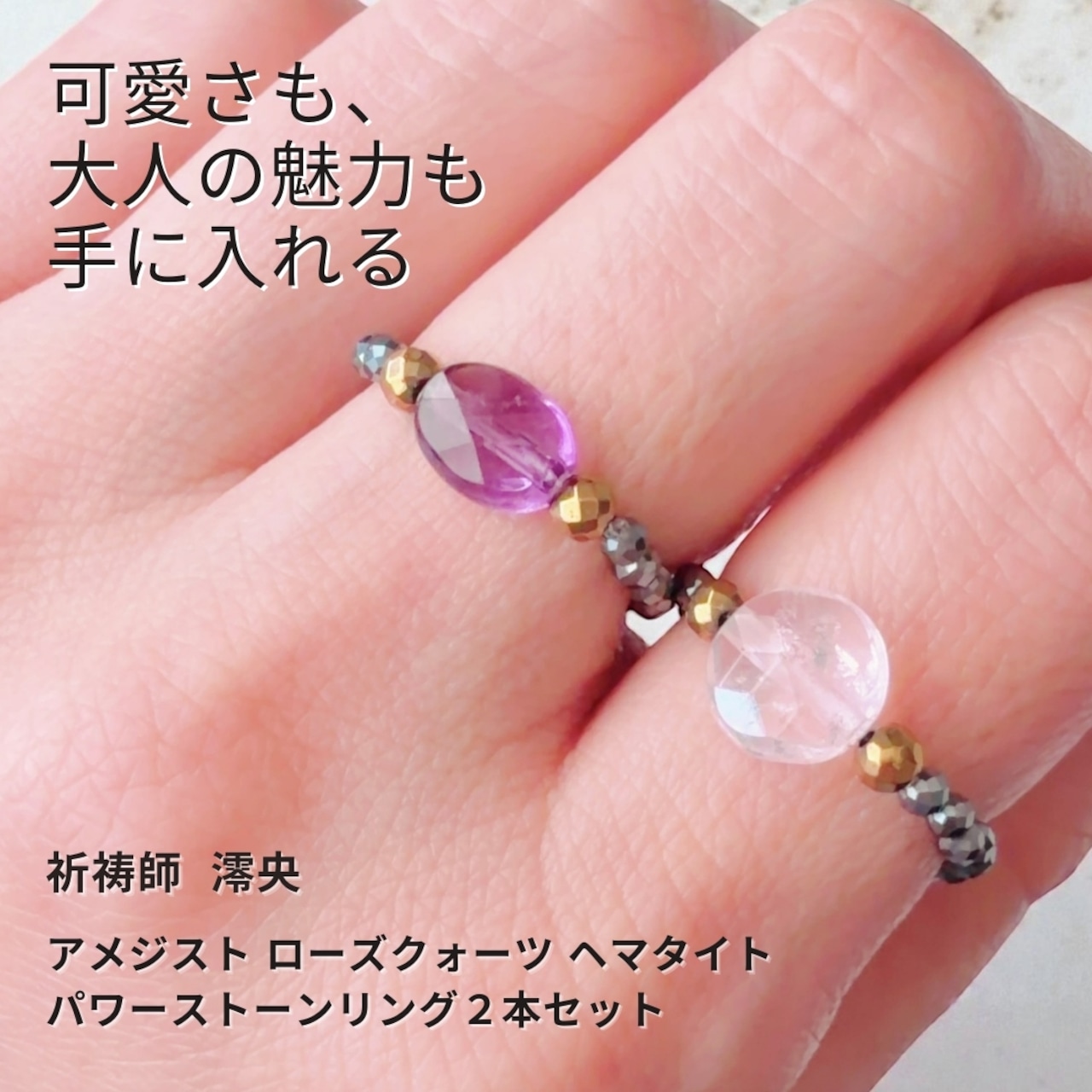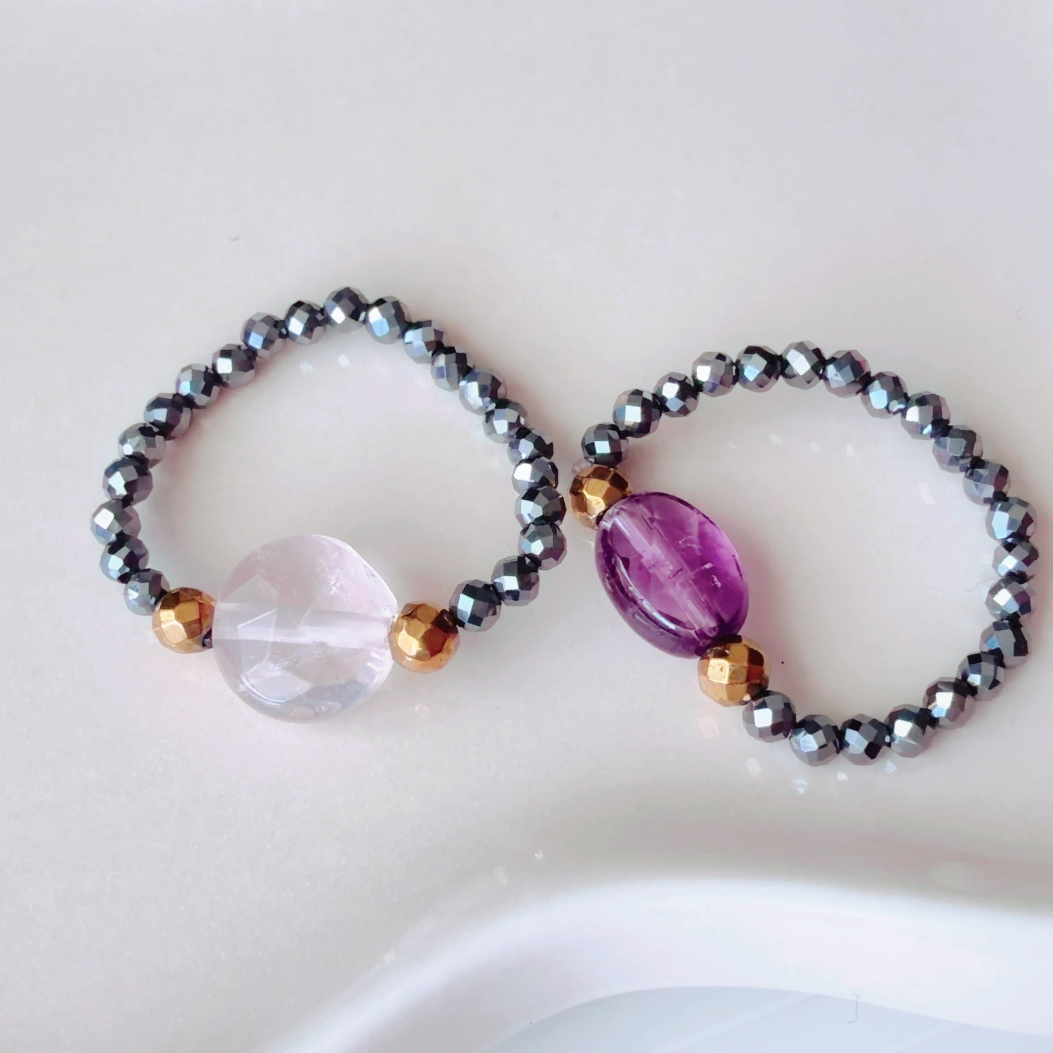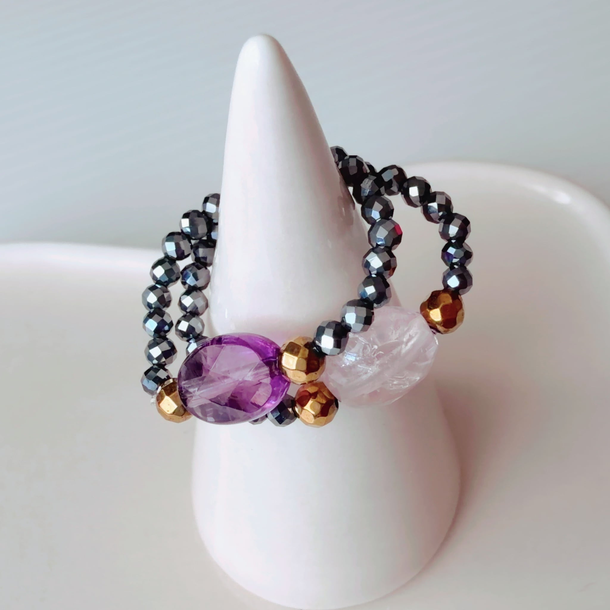 一方的な想いを「気づかれる恋」へ変える【恋愛運】甘い桃色・妖艶な紫色の輝きで気づかせたい、異性の気を惹く パワーストーンリングセット アメジスト ローズクォーツ ヘマタイト