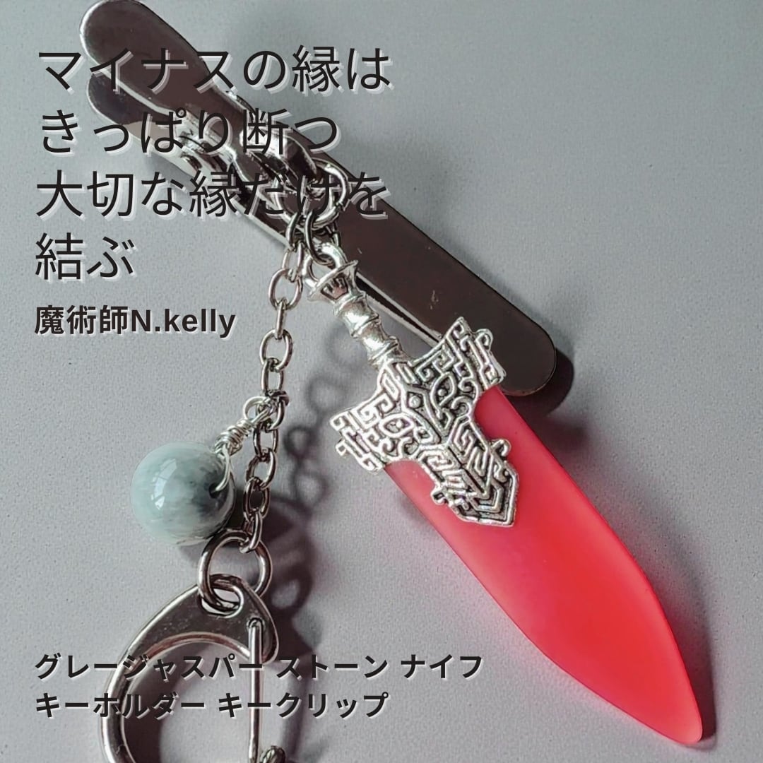 ウィッチの縁切りナイフ 別れたい 離れたい 別れさせたい 悪い縁を切る グレージャスパー ストーン ナイフ キーホルダー キークリップ N.kelly製作