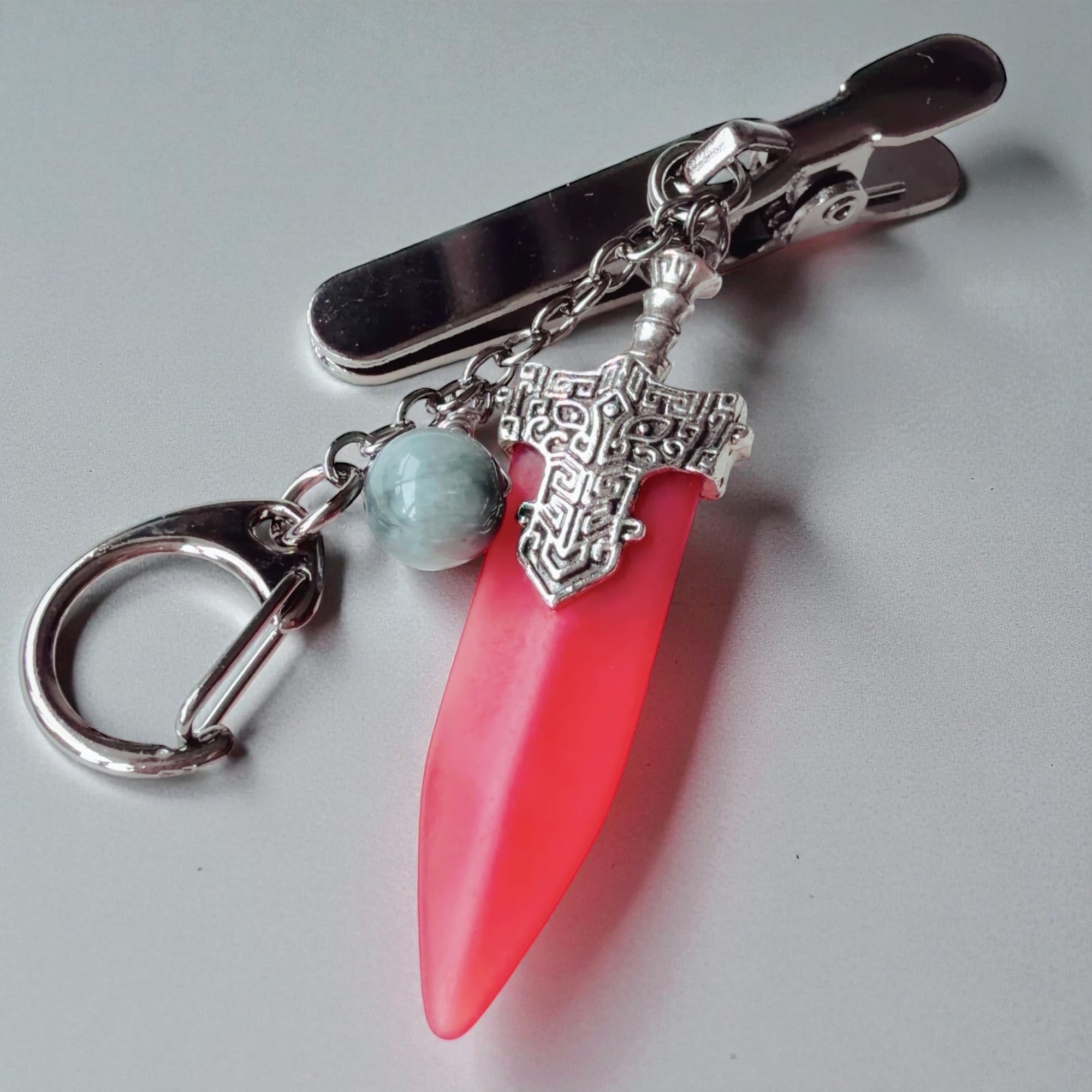 K535 ウィッチの縁切りナイフ 別れたい 離れたい 別れさせたい 悪い縁を切る グレージャスパー ストーン ナイフ キーホルダー キークリップ N.kelly製作 略奪 不倫 三角関係 恋愛運 成就 お守り 叶う 本命 略奪 不倫 ライバル 三角関係 おまもり おまじない 魔術 本物 強力 白魔術 占い 願いが叶う