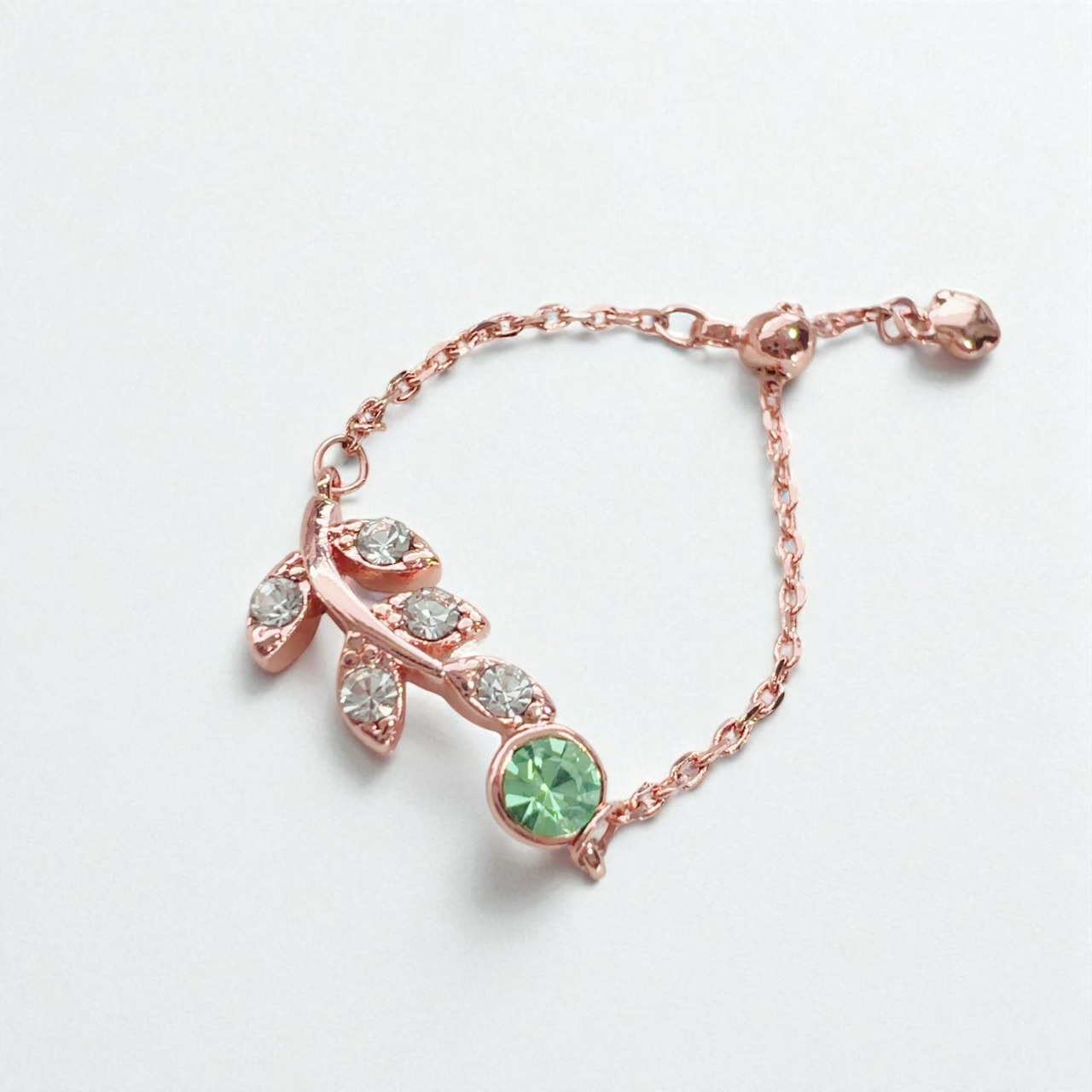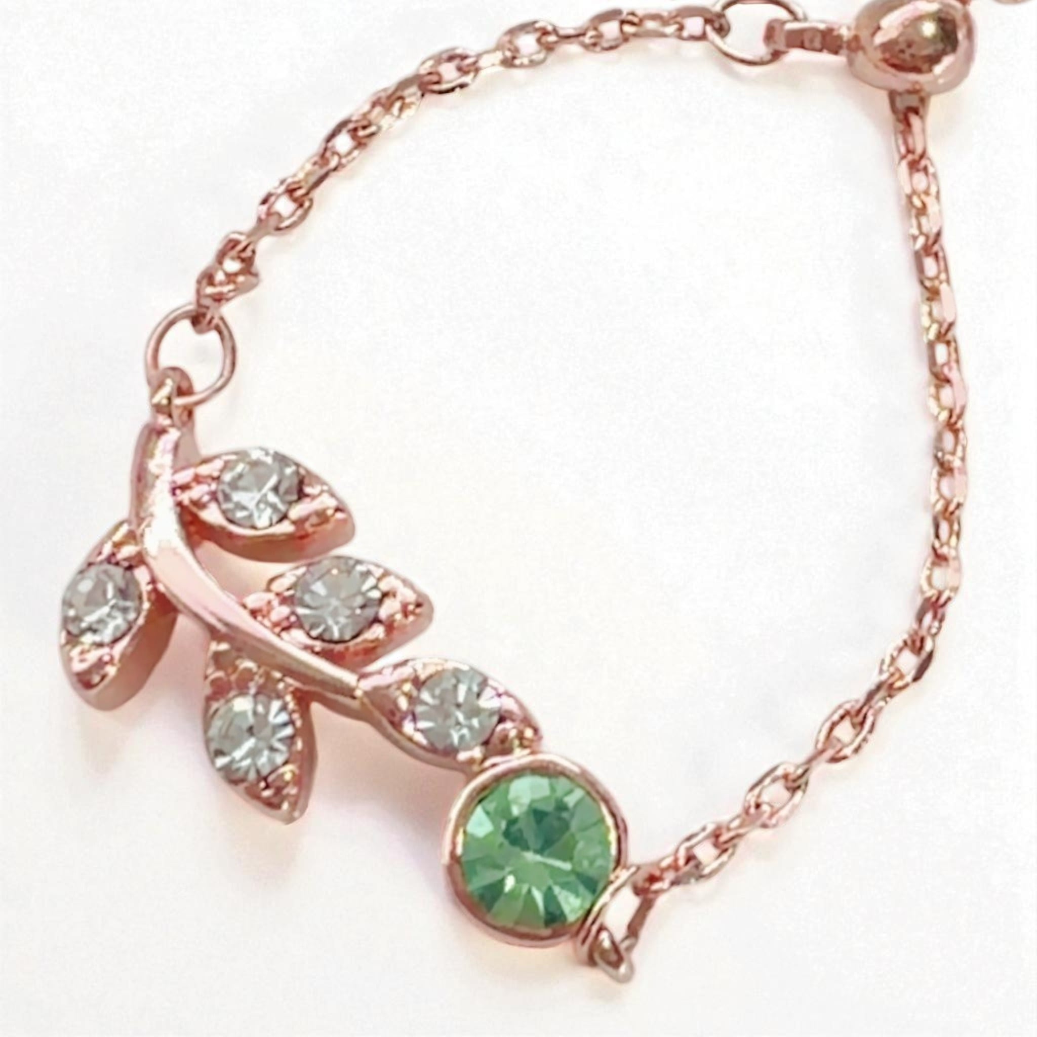 淡い色合いのグリーンストーンは癒しと調和のエネルギーを、クリアストーンは浄化と純化のエネルギーを表してます。