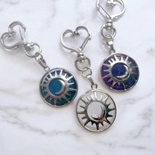 月と太陽の陰陽のシンボルと見惚れるほどに美しい天然石で仕上げたパワーストーンキーホルダー。