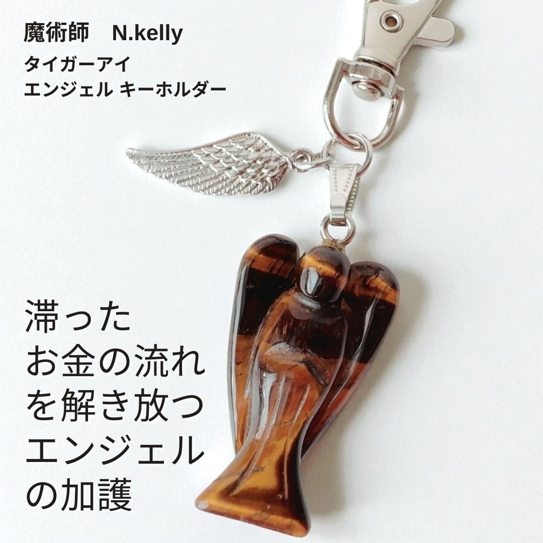 K539 大地のパワーで「金運開花」 お金の流れを手に入れる 潤う生活 タイガーアイ エンジェル キーホルダー N.kelly 製作 天然石 金運 収入アップ 魔力 魔術 白魔術 開運 強運 本物 パワーストーン お守り 強力 誕生石 魔法 占い 本物