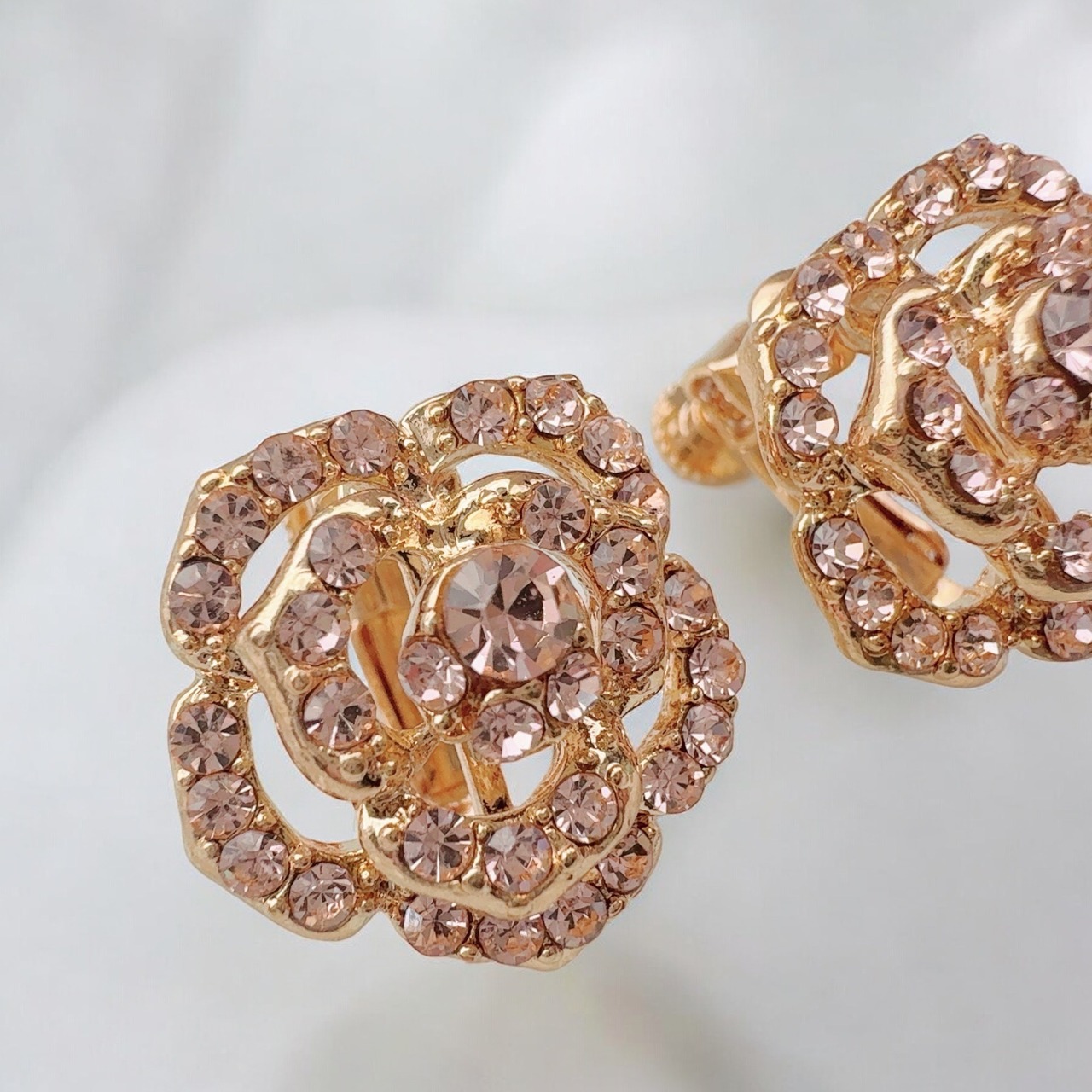 ローズの誘惑 愛を引き寄せる 溺愛魔術 ピンクローズ ゴールド イヤリング 薔薇 マチュラダイヤモンド N.kelly製作