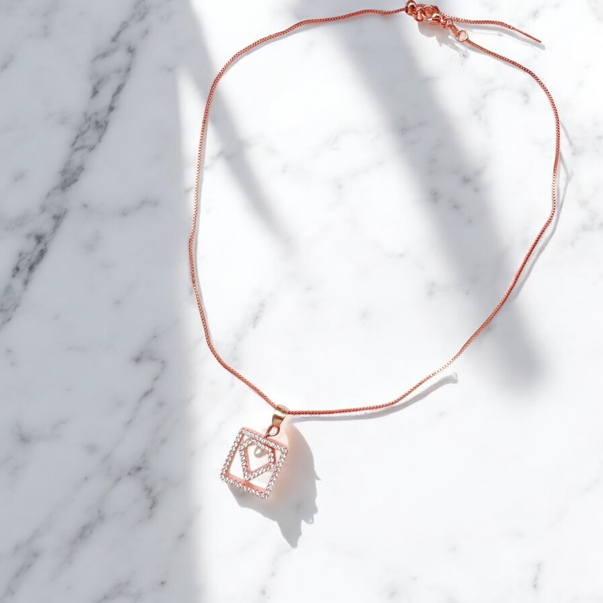 ダイヤモンド形のデザインが特徴的なネックレスは、秋の実り多きメイボンのサバトでの施術を経て金運加護が得られますよう仕上げられています。