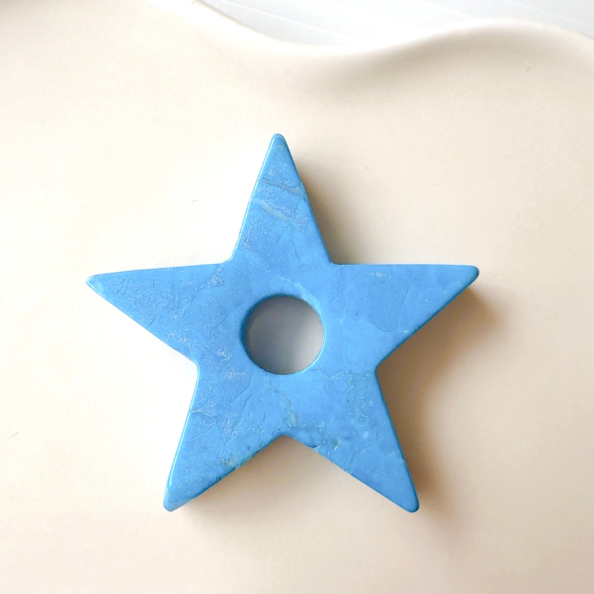てぃだの強力なパワースポットで送念し仕上げた、澄んだ青空を思わせる ハウライトの星型チャーム。
